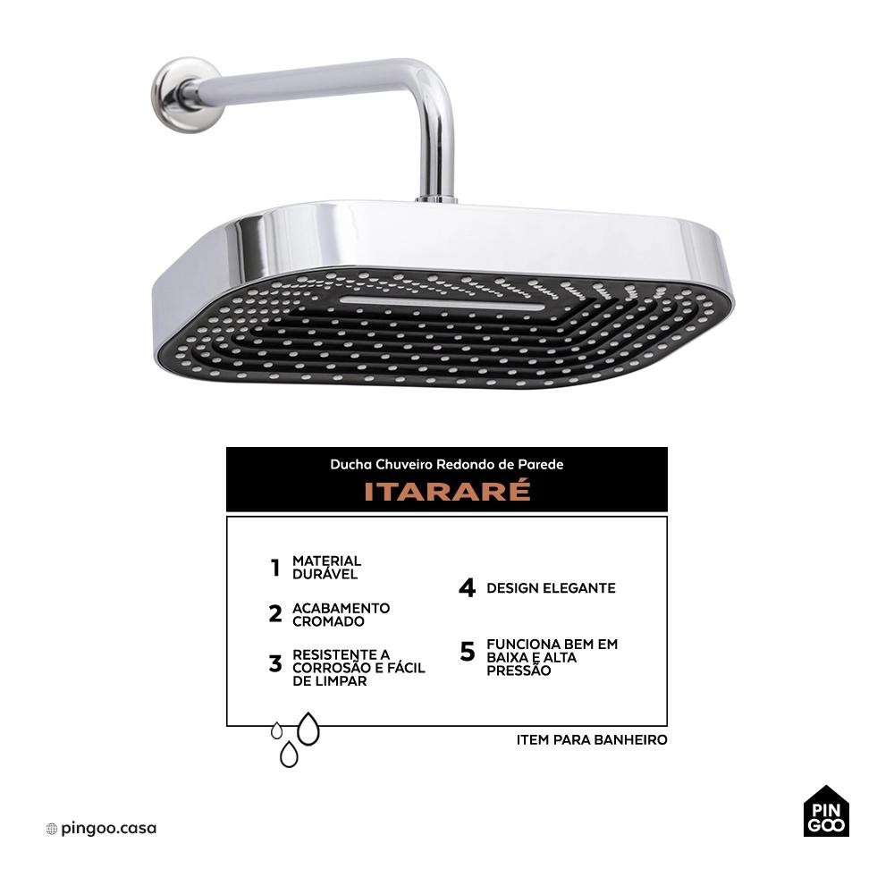 Ducha Chuveiro Retangular de Parede Guamá Pingoo - Prata