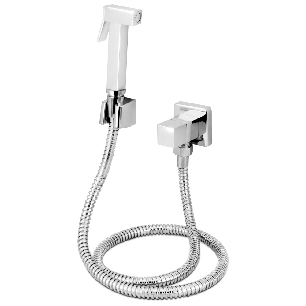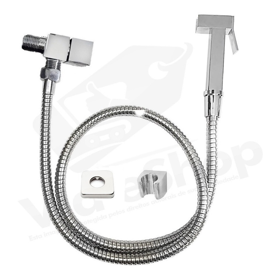 Ducha Higienica toda Metal 1/4 Volta Registro Quadrado 1,20m Banheiro Luxo Chuveirinho Duchinha