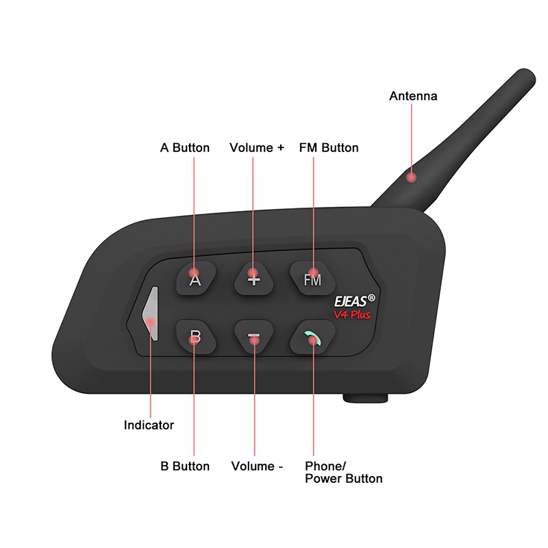 EJEAS V4C PLUS Referee Bluetooth Intercom Headset, Bluetooth 5.1, 4 people talk in real time Waterproof 1 Pack
