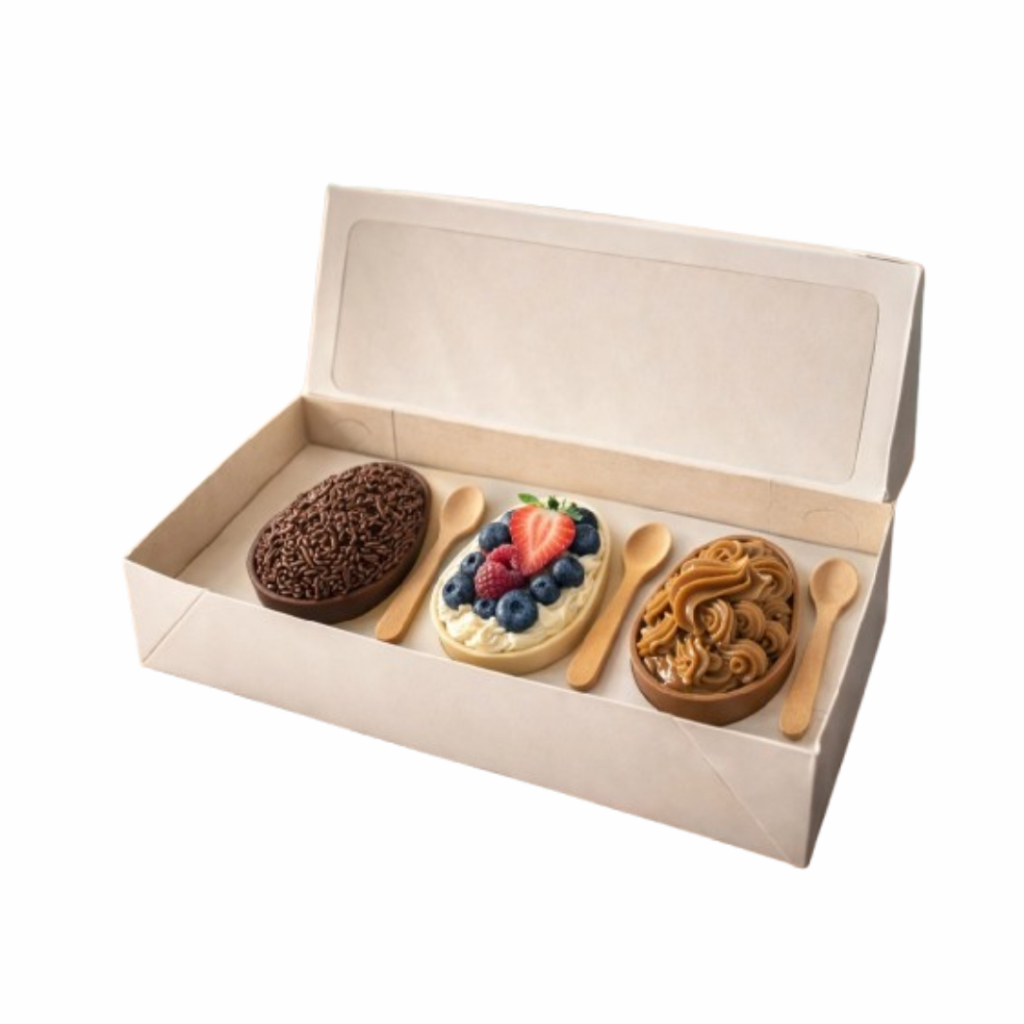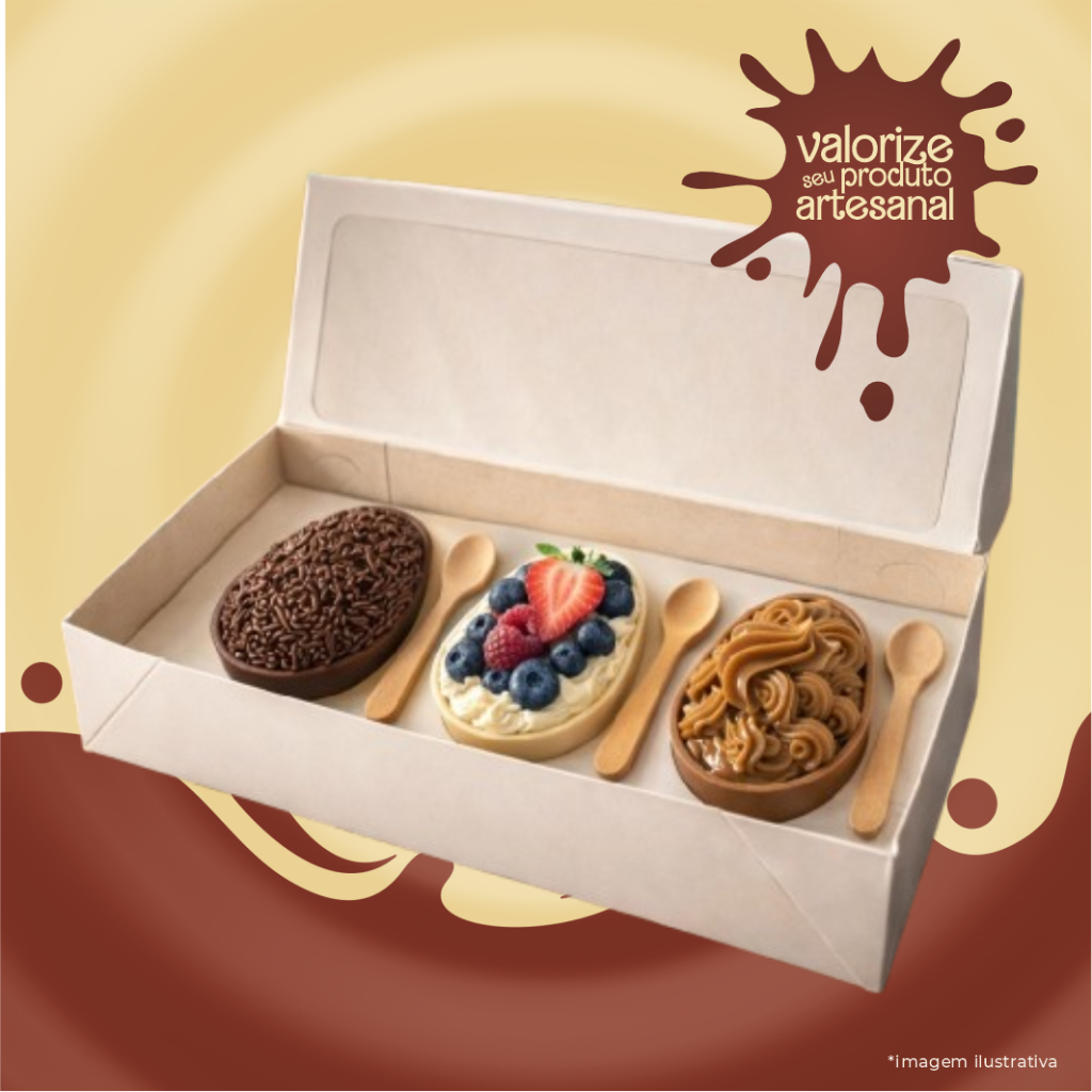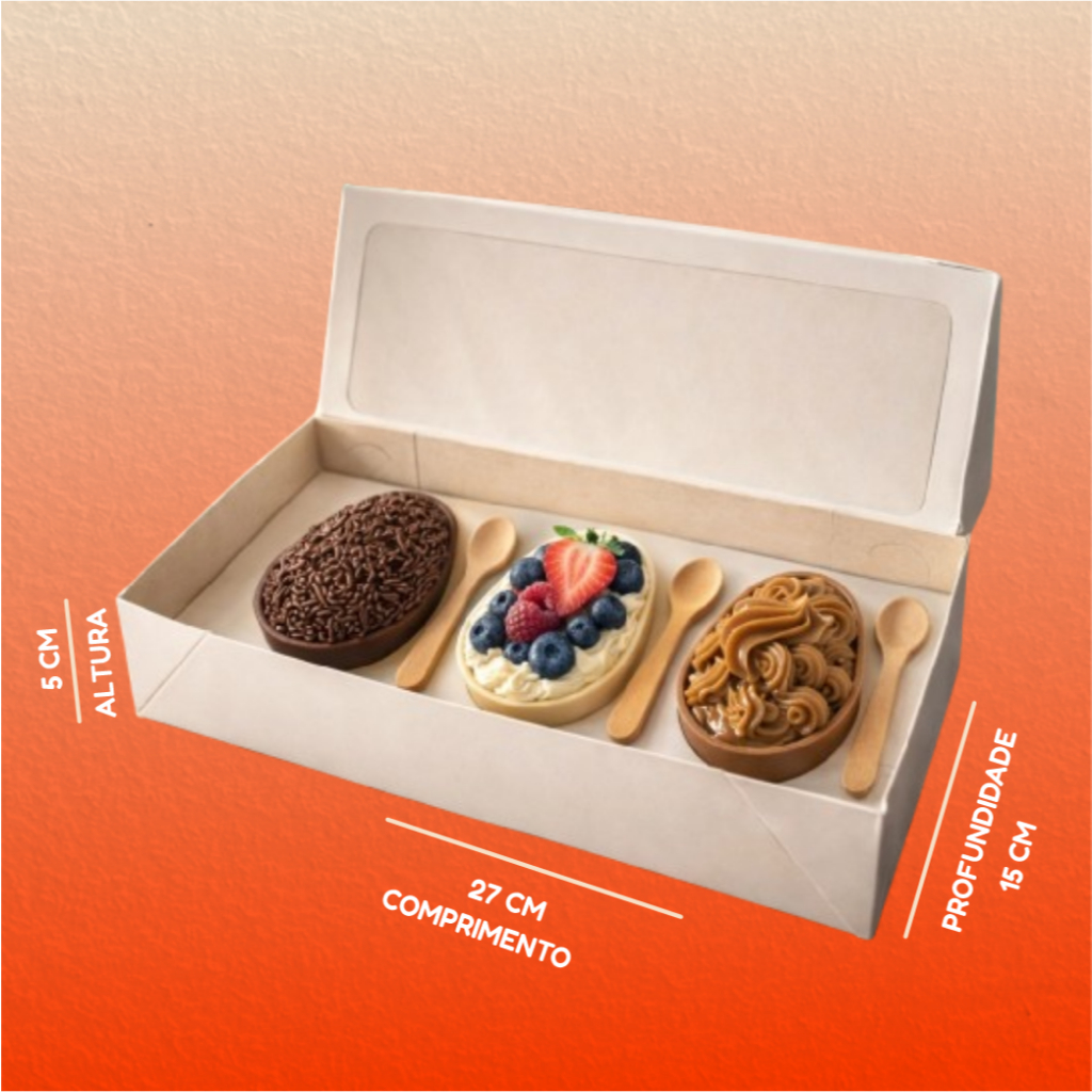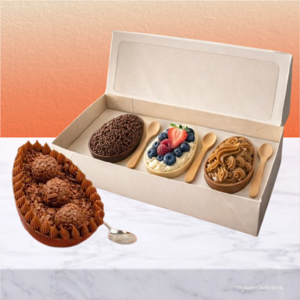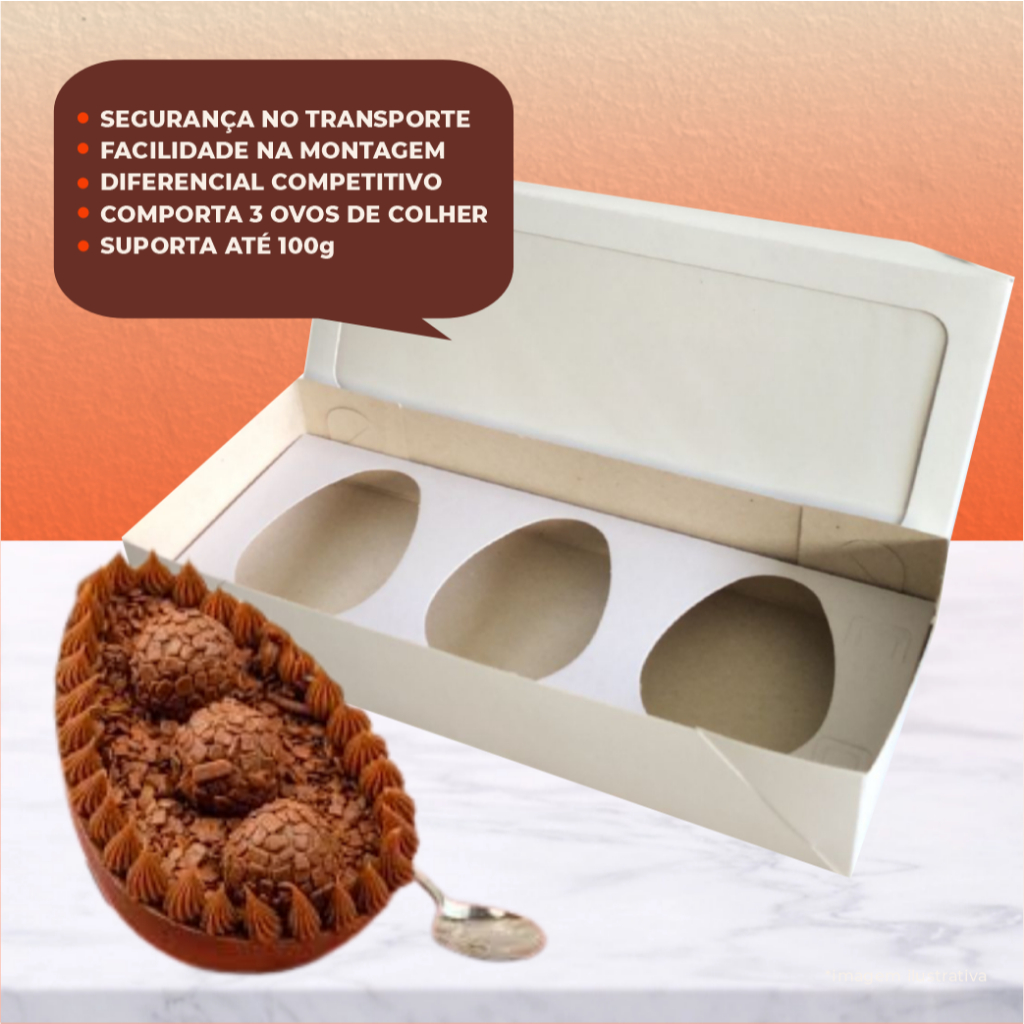 EMBALAGEM PARA 03 OVO DE COLHER 100g, páscoa chocolate caixinha com berço kit 10 peças
