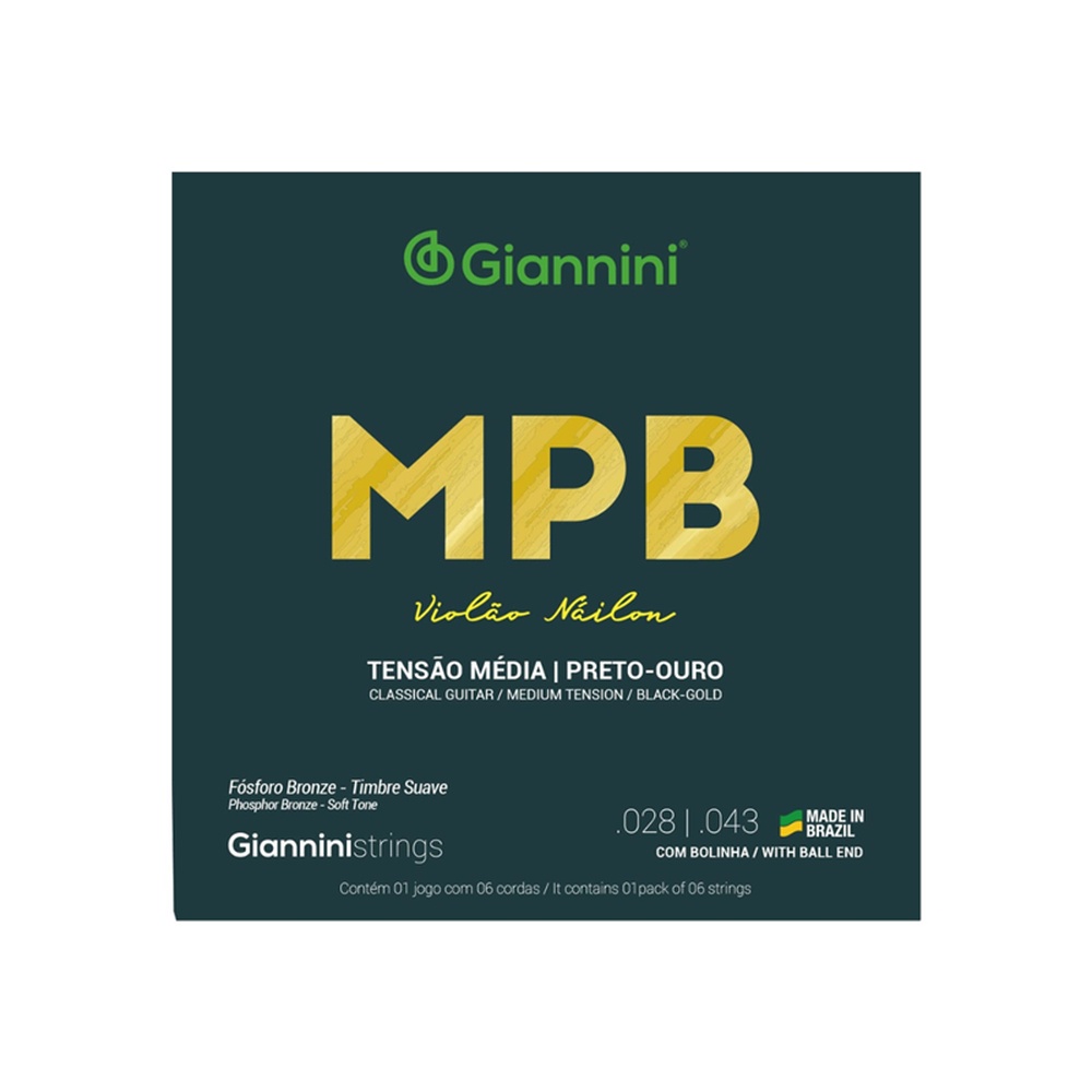 ENCORDOAMENTO GIANNINI VIOLÃO GENWBG PRETO OURO C/BOLINHA