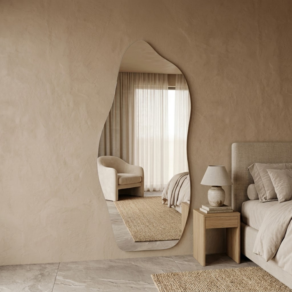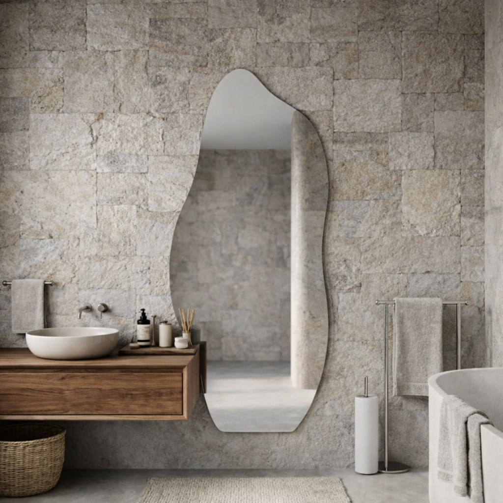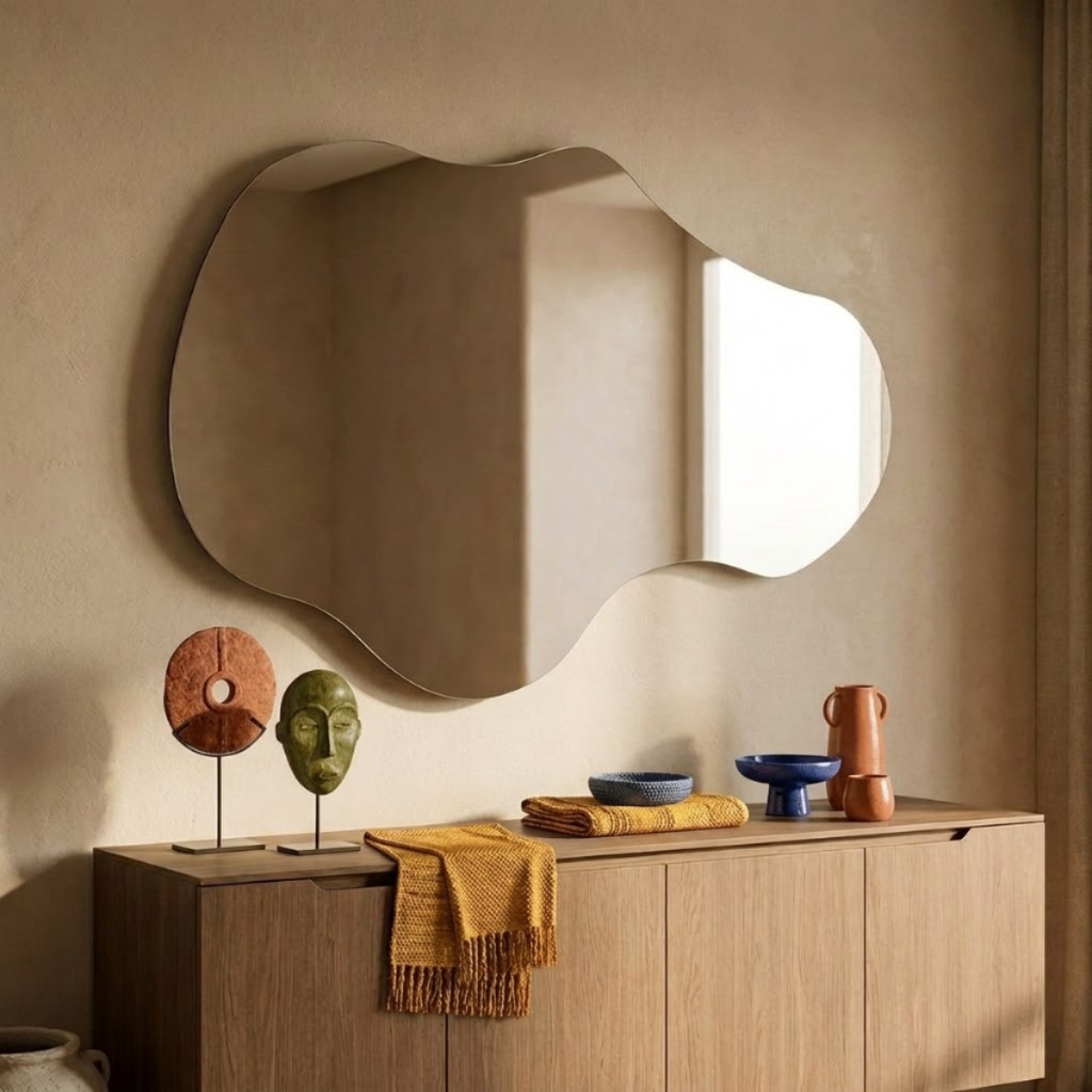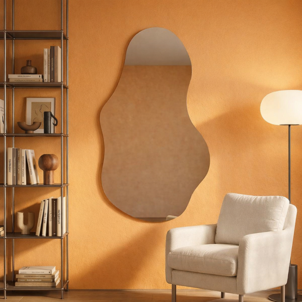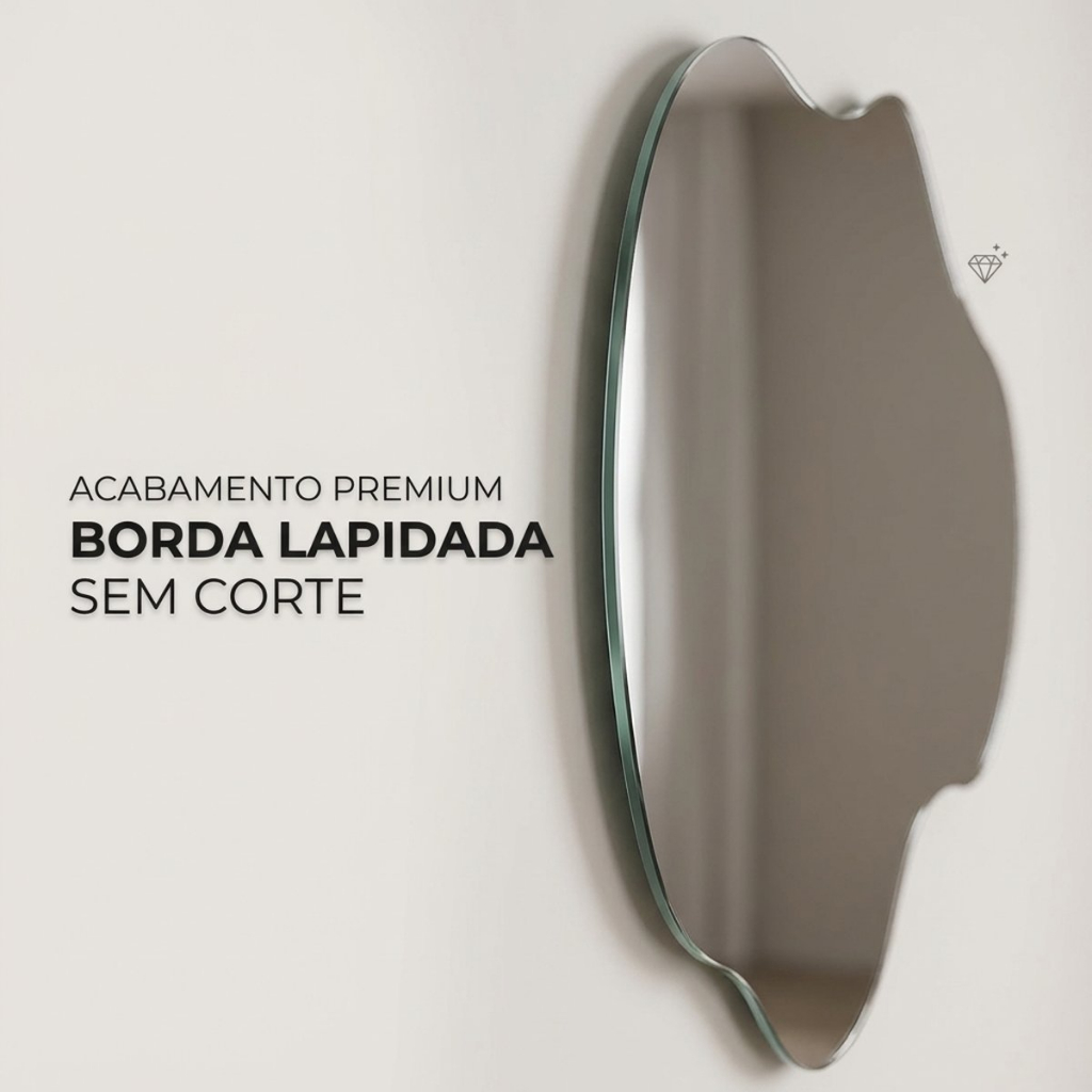 ESPELHO GRANDE CORPO INTEIRO ORGANICO POLIDO 90X60cm DECORATIVO DECORAÇÃO INSTALAÇÃO COM SUPORTE