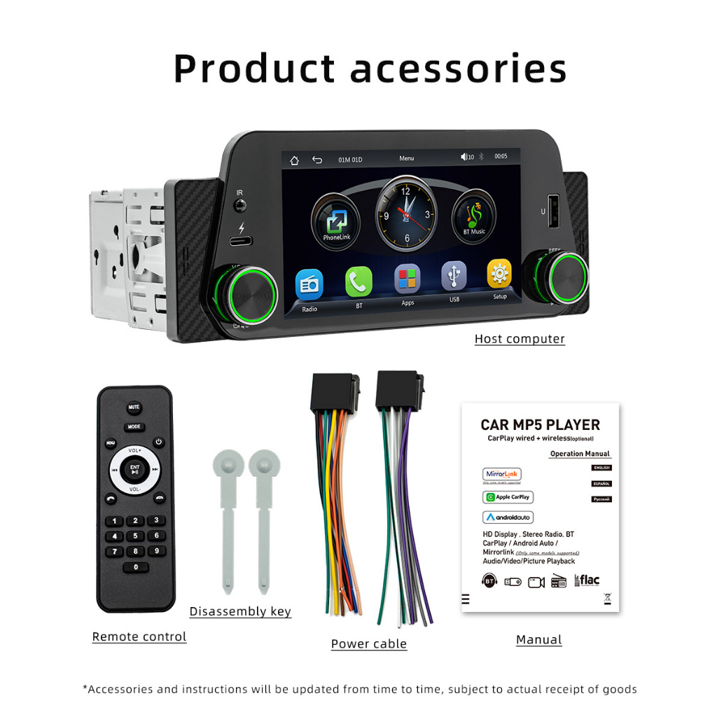 ESSGOO 5 " Rádio Estéreo De Carro Suporte Carplay & Android Auto 1 Din FM Bluetooth Central Multimídia MP5 Player