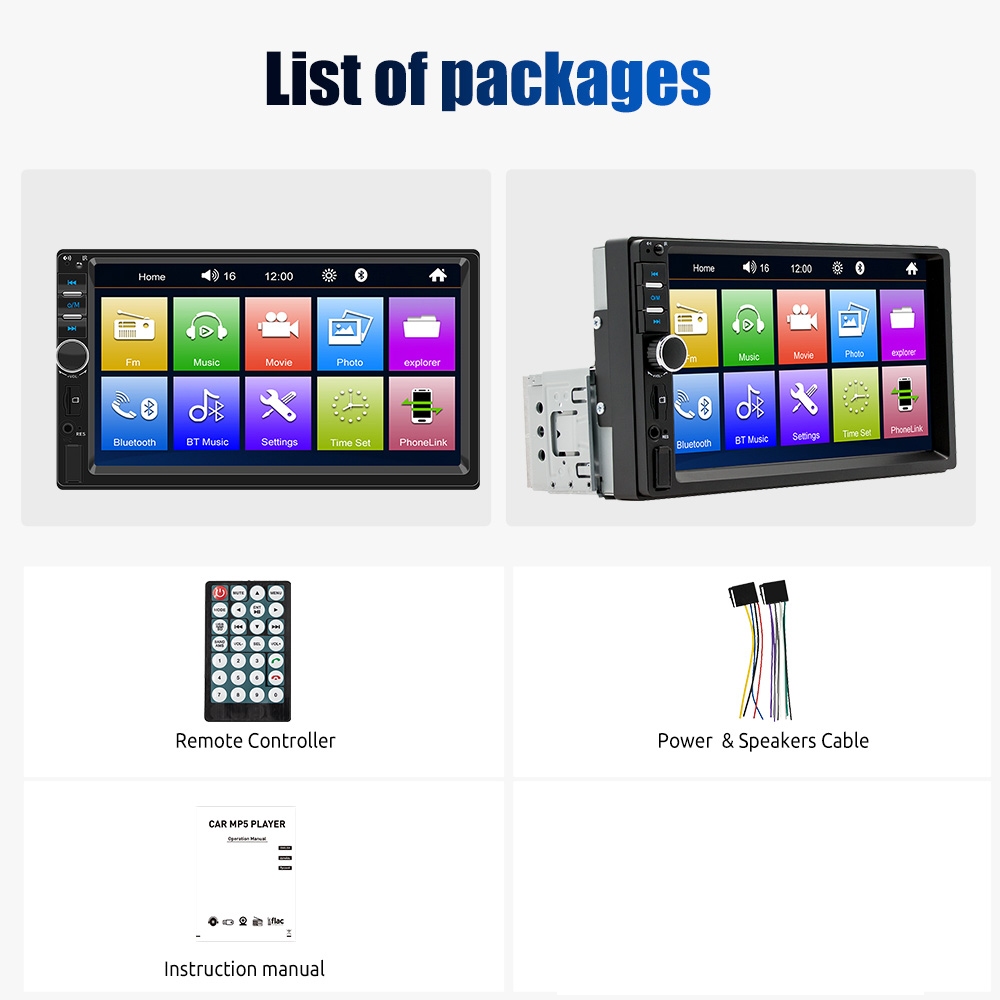 ESSGOO 7 Polegadas DIN duplo Reprodutor De Rádio Bluetooth Mp5-Black-Intercnect- Claro De Fundo Colorido