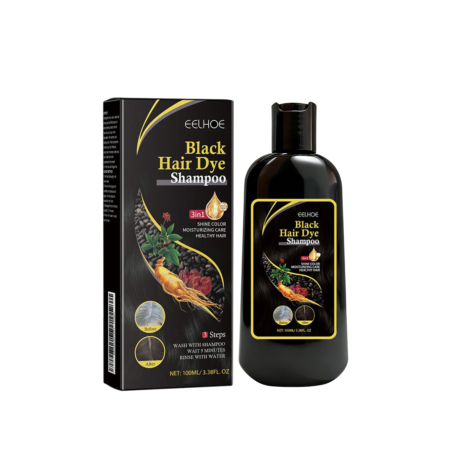 Eelhoe Shampoo Branco A Preto 1 Unidade Extrato Hidratar Limpo Suave Enegrecer Cuidados Com Os Cabelos