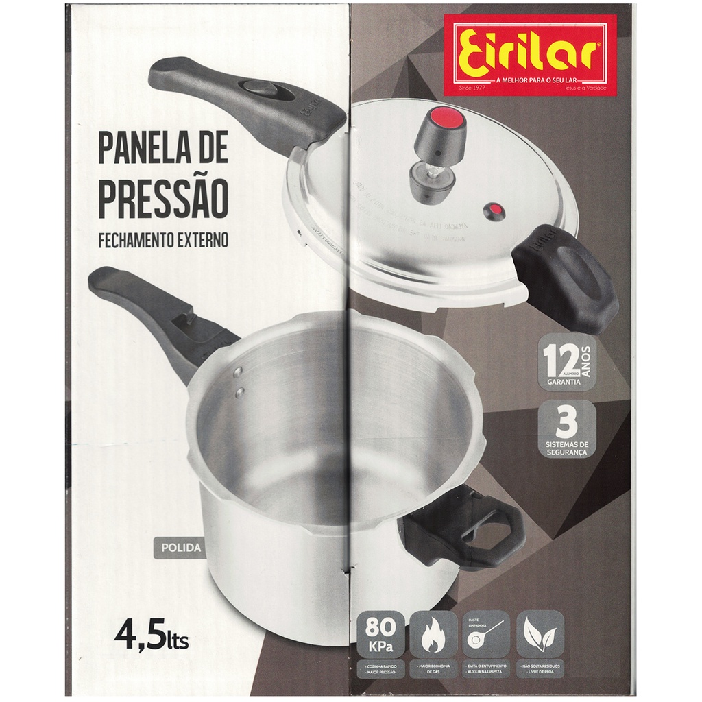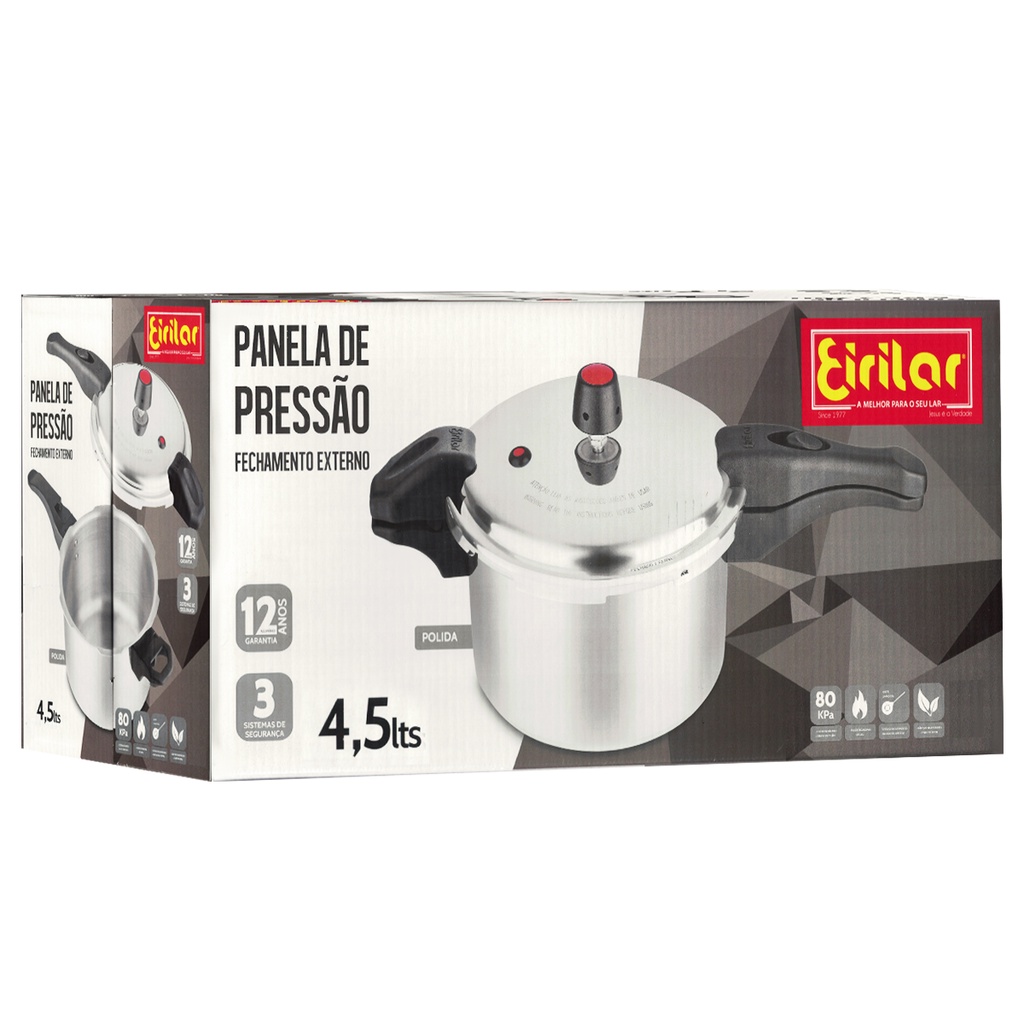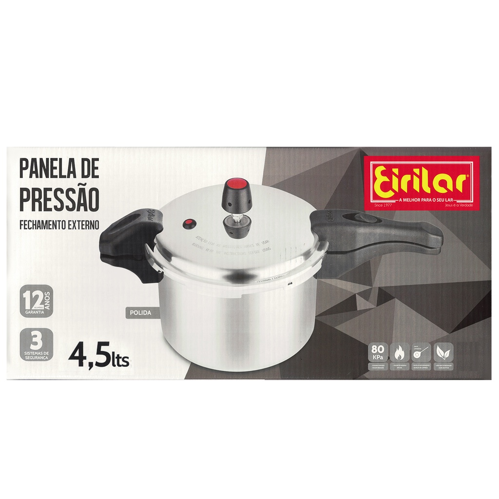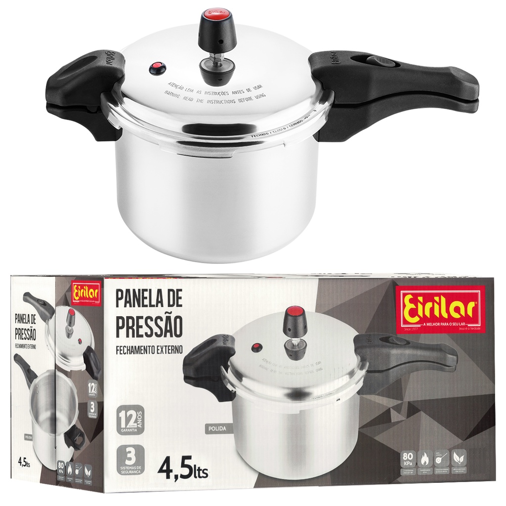 Eirilar Panela De Pressão 4,5 Litros Cabo Polida Fechamento Externo