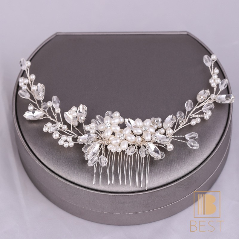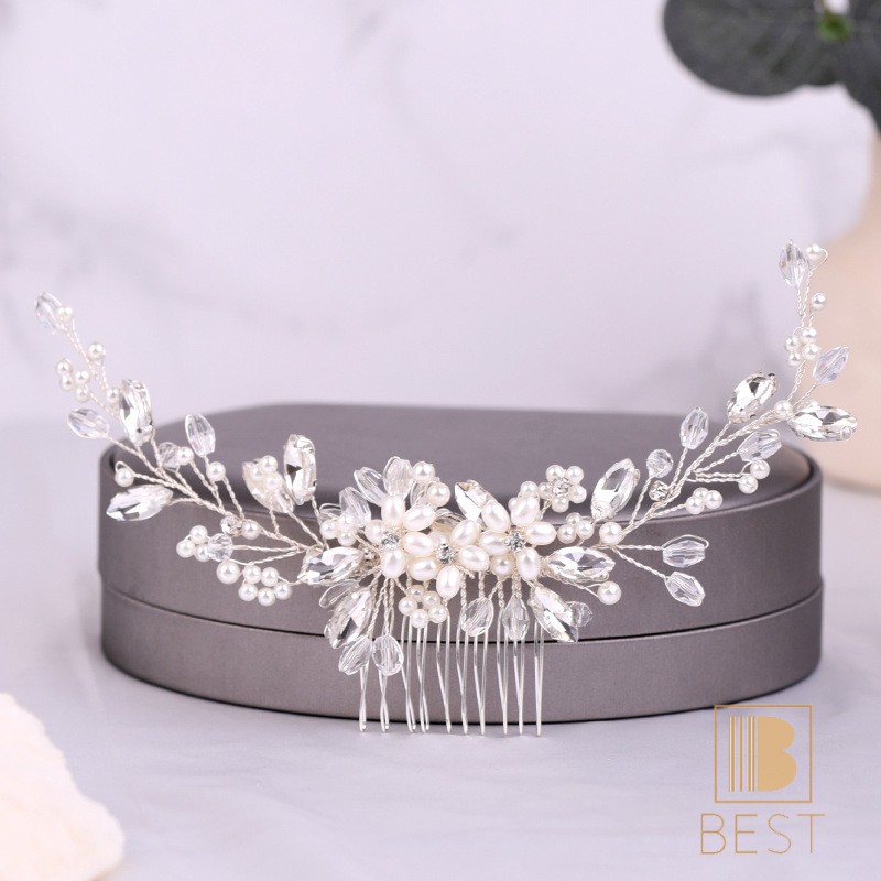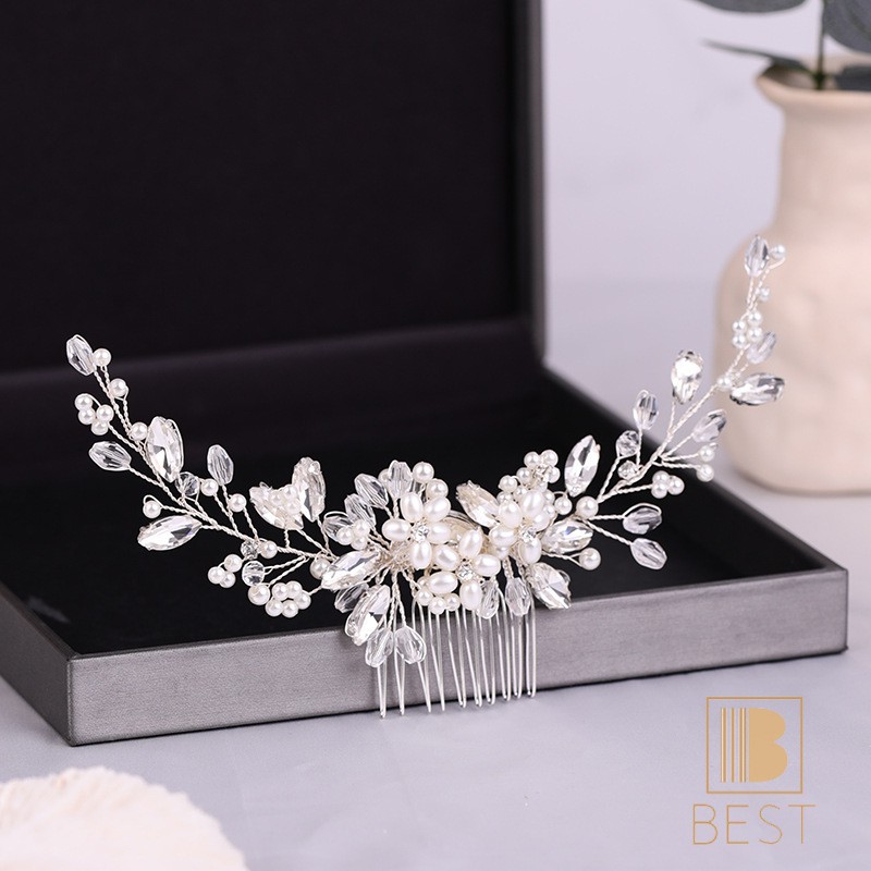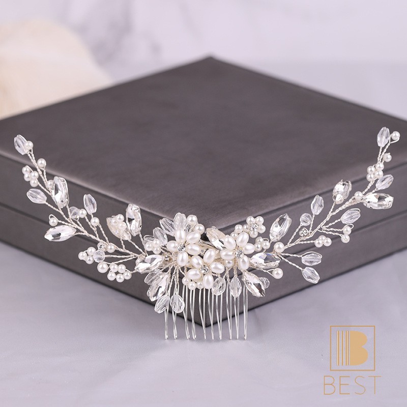 Elegant Pearl Beads Long Curved Shape Hair Comb Inserted Combs Hair Ornaments Headpiece Wedding Bridal Accessories