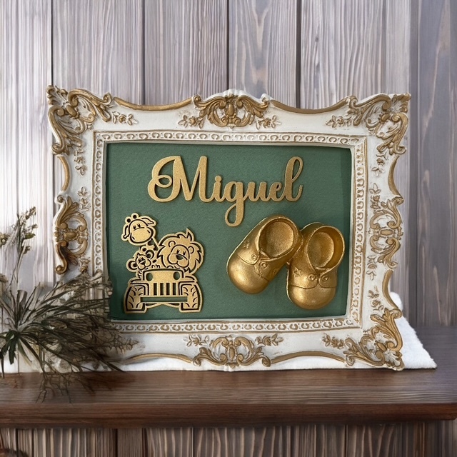 Enfeite porta maternidade em resina Safari com nome do bebê