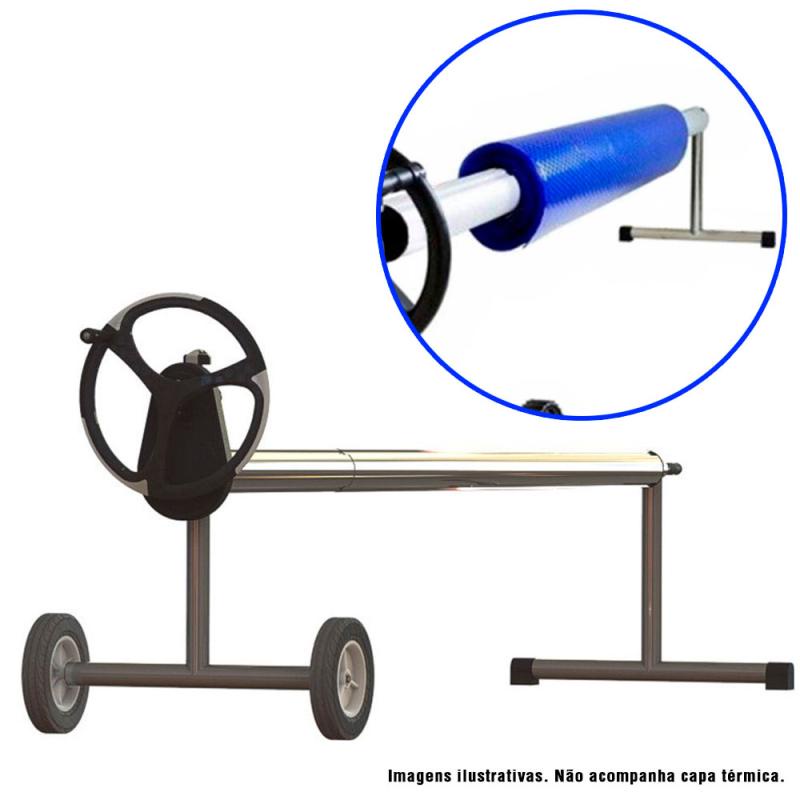 Enrolador para Capa Térmica Piscinas até 5,50 x 20 Metros Aço Inox + Tubos de Alumínio SODRAMAR