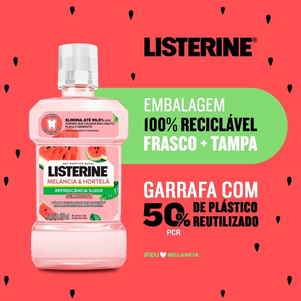 Enxaguante Bucal Listerine, Melancia e Hortelã sem Álcool 250ml