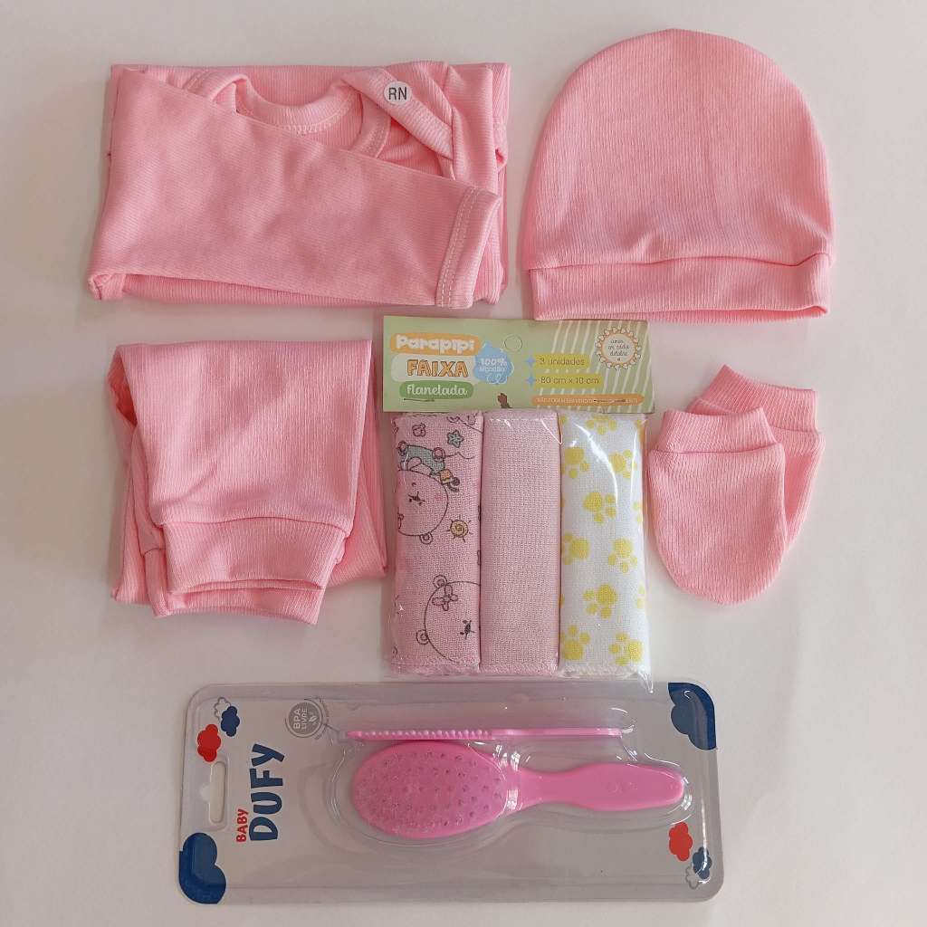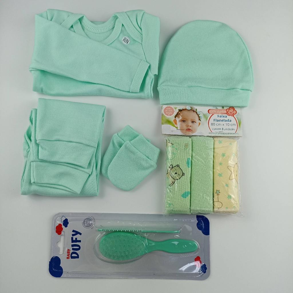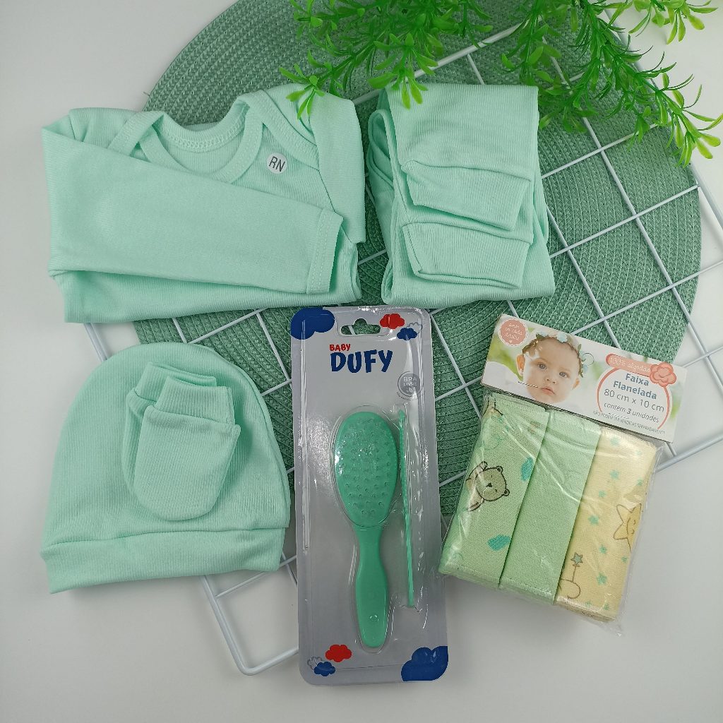 Enxoval Maternidade 9 peças Saída Maternidade Recém Nascido com Faixa Umbigo Touca Luva
