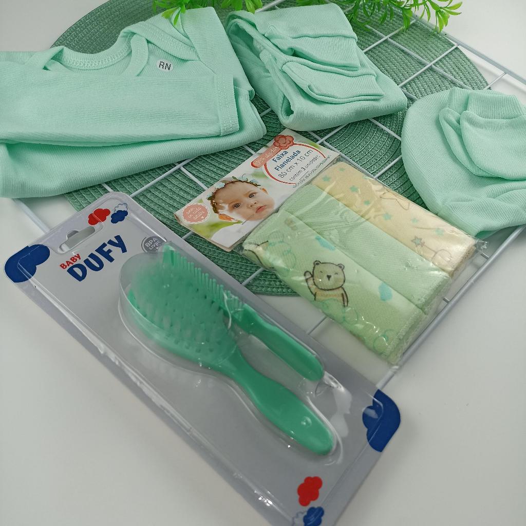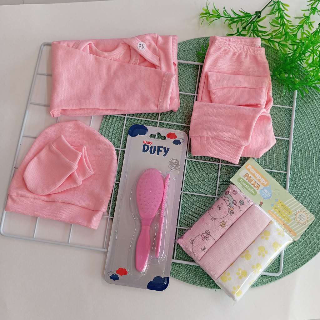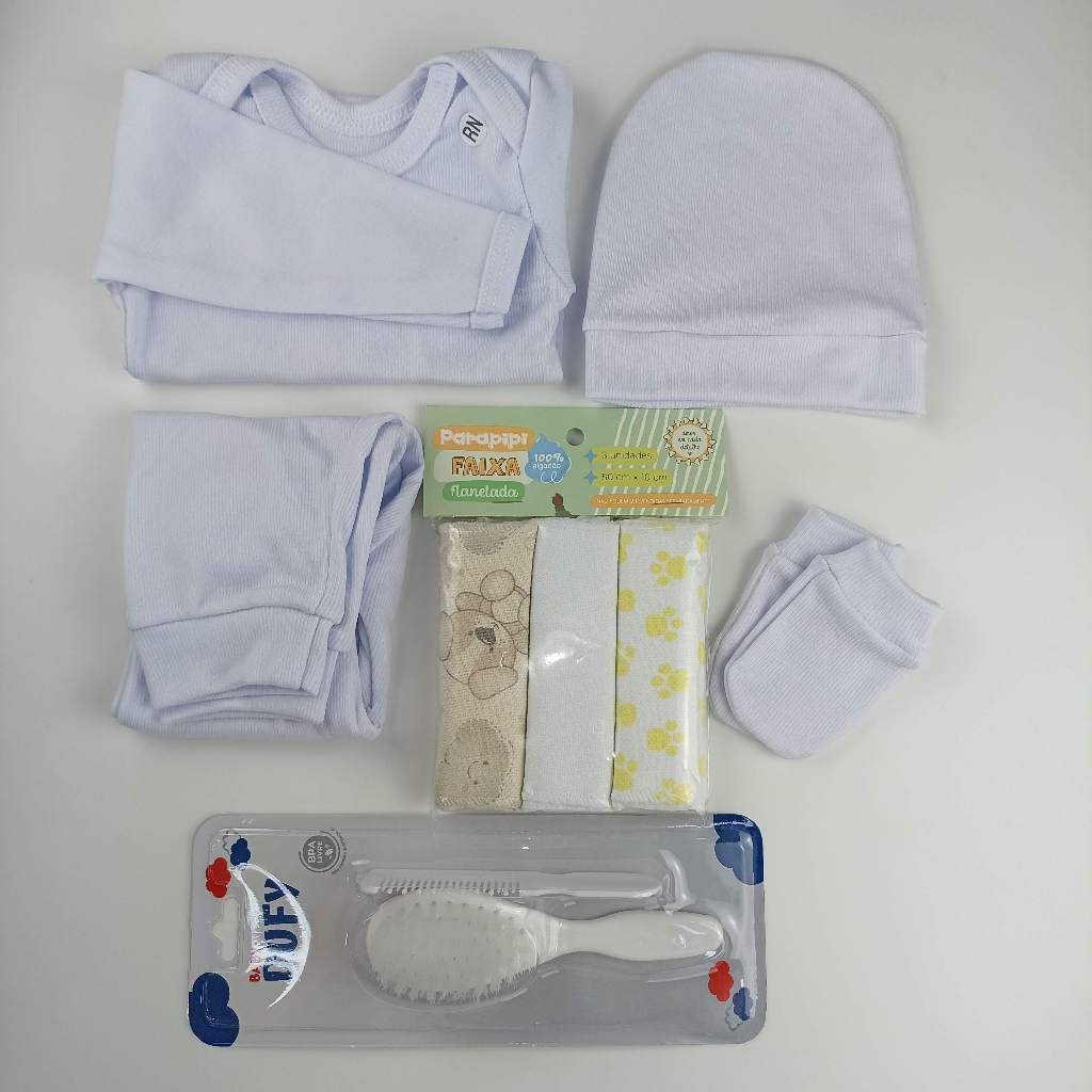 Enxoval Maternidade 9 peças Saída Maternidade Recém Nascido com Faixa Umbigo Touca Luva