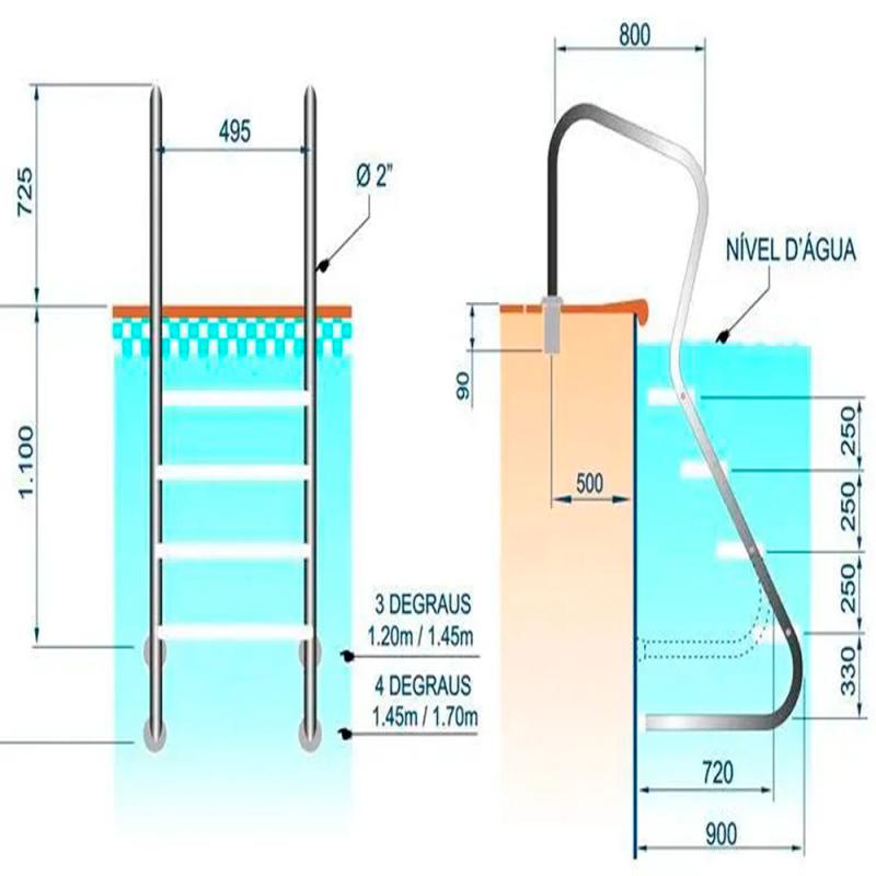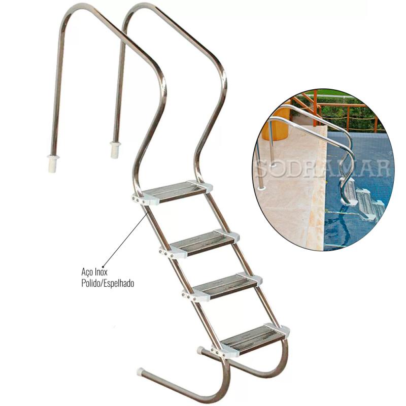 Escada confort em Inox para piscinas 2 POL 4 Degraus 010103 SODRAMAR