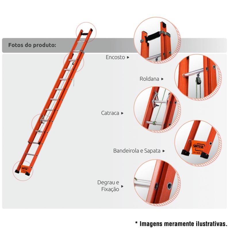 Escada de Fibra de Vidro 26 Degraus Extensível 4,8 x 8,1 Metros EAFD-26 SÍNTESE