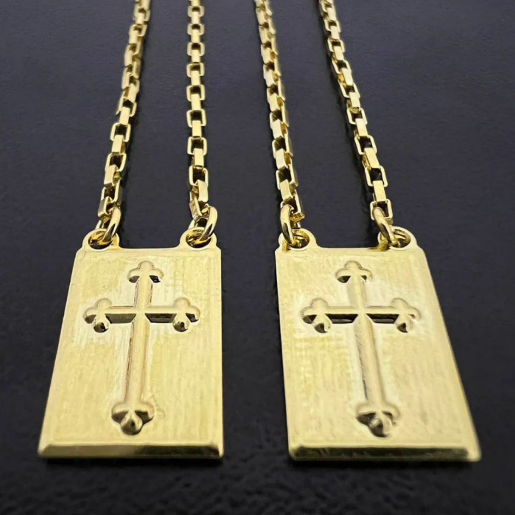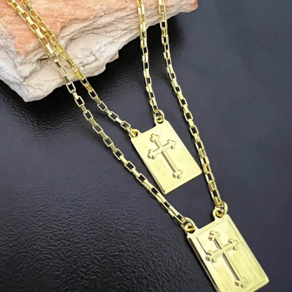 Escapulário Colar Masculino Plaquinha Cruz Crucifixo Banhado a Ouro 18k