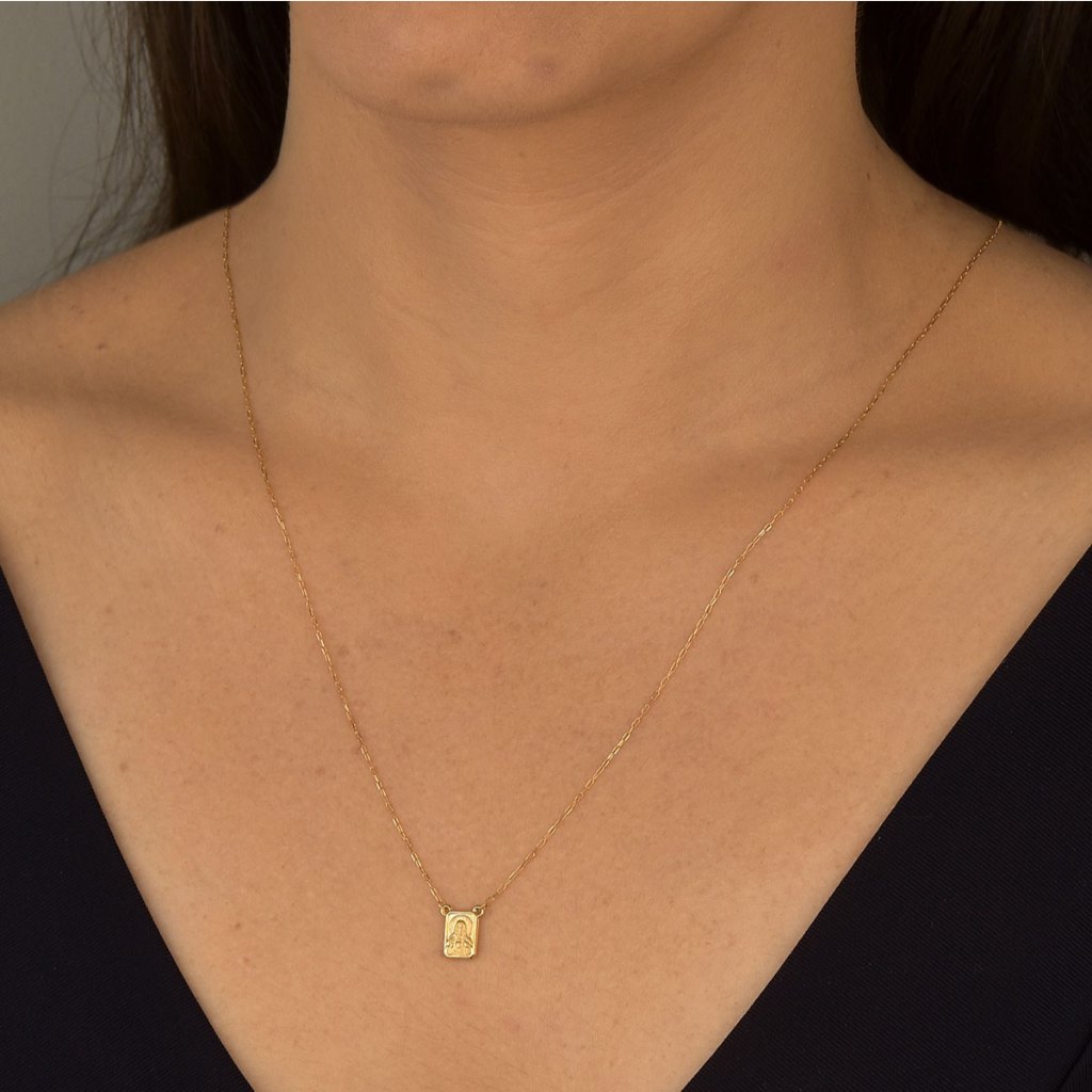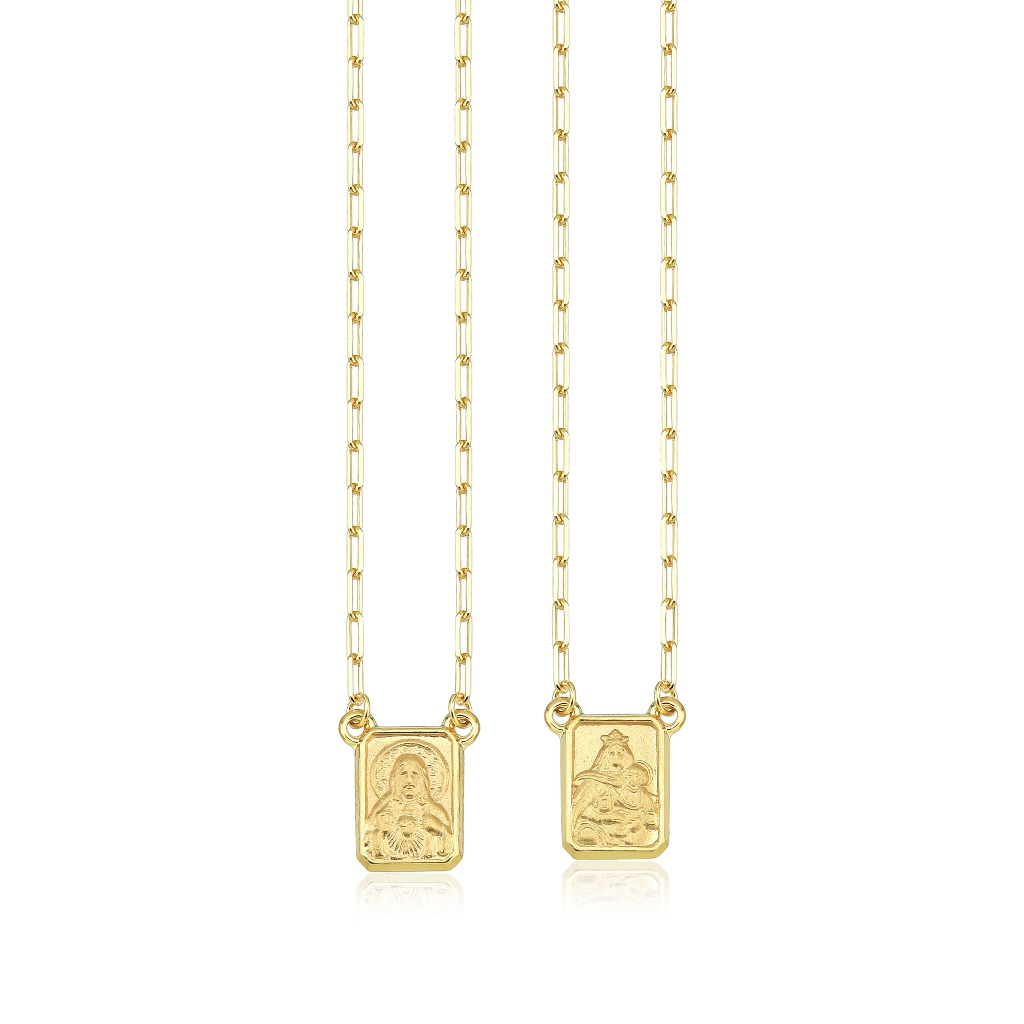 Escapulário de Ouro 18k Sagrado Coração Jesus e Nossa Senhora do Carmo mini