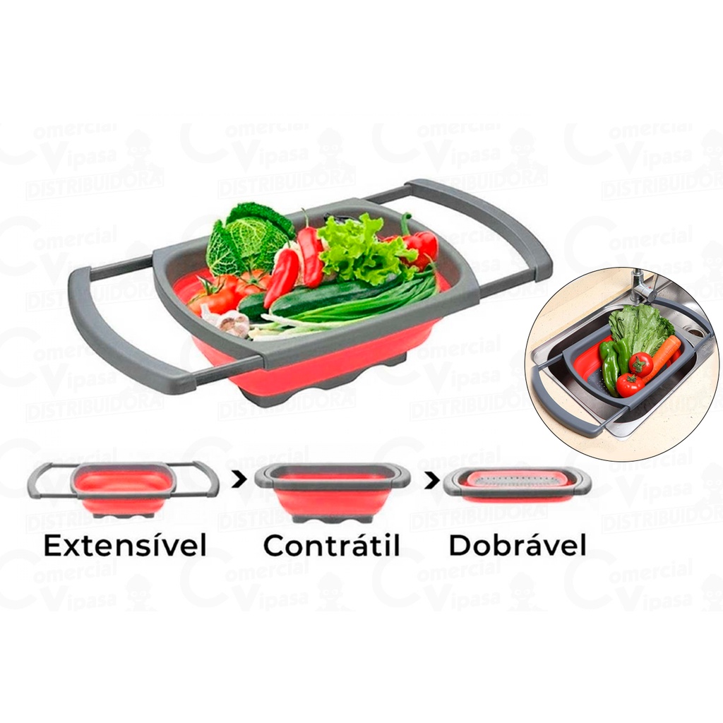 Escorredor De Alimentos Retrátil Dobrável Silicone Redondo Ou Quadrado Multiuso Louça Prático Rápido