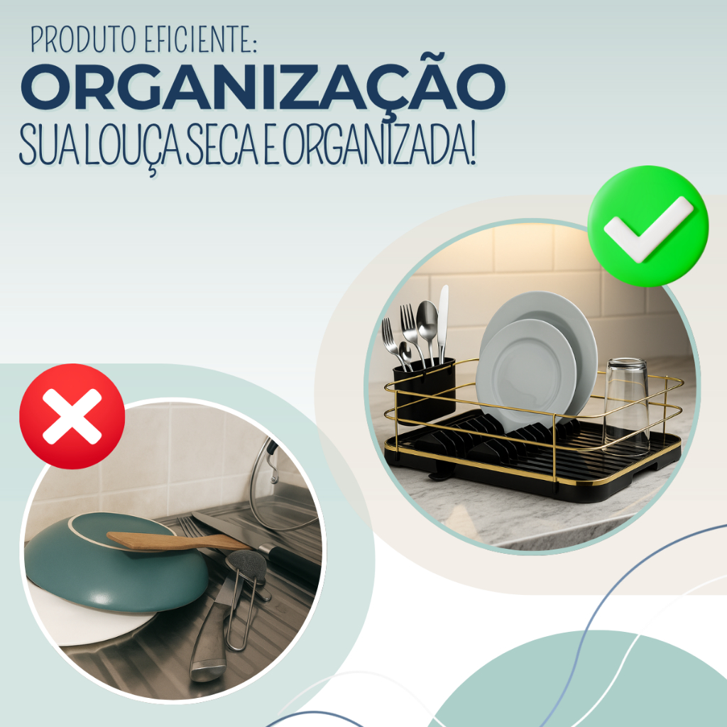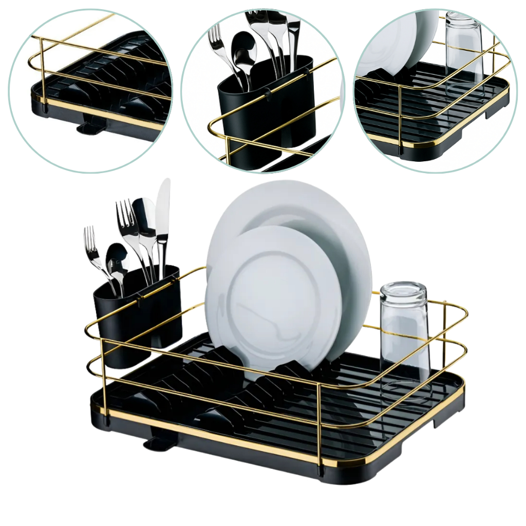Escorredor De Louça Cozinha Porta Talheres Pia 11 Pratos Preto Dourado Gold Escoamento De Água