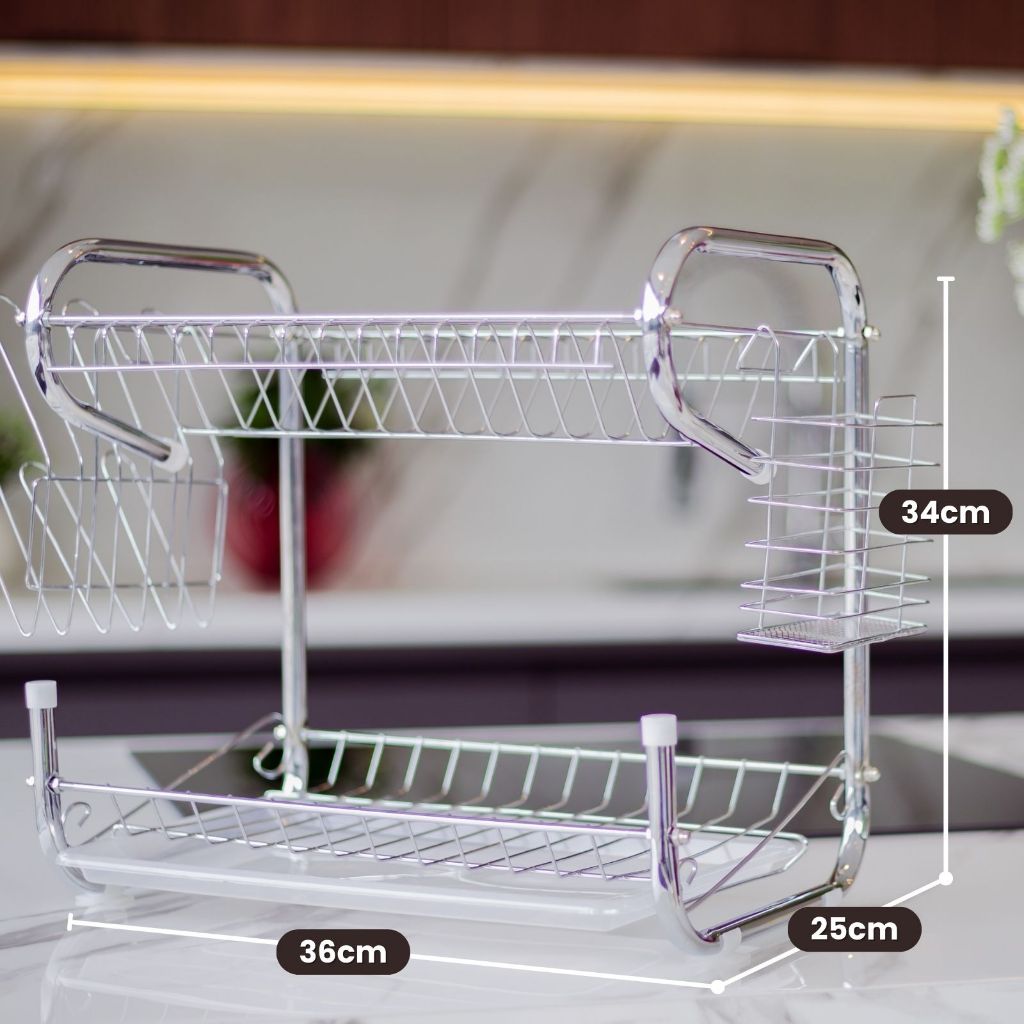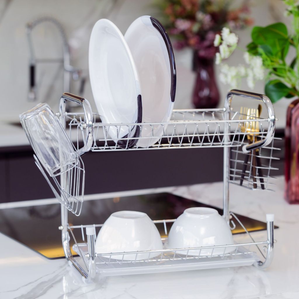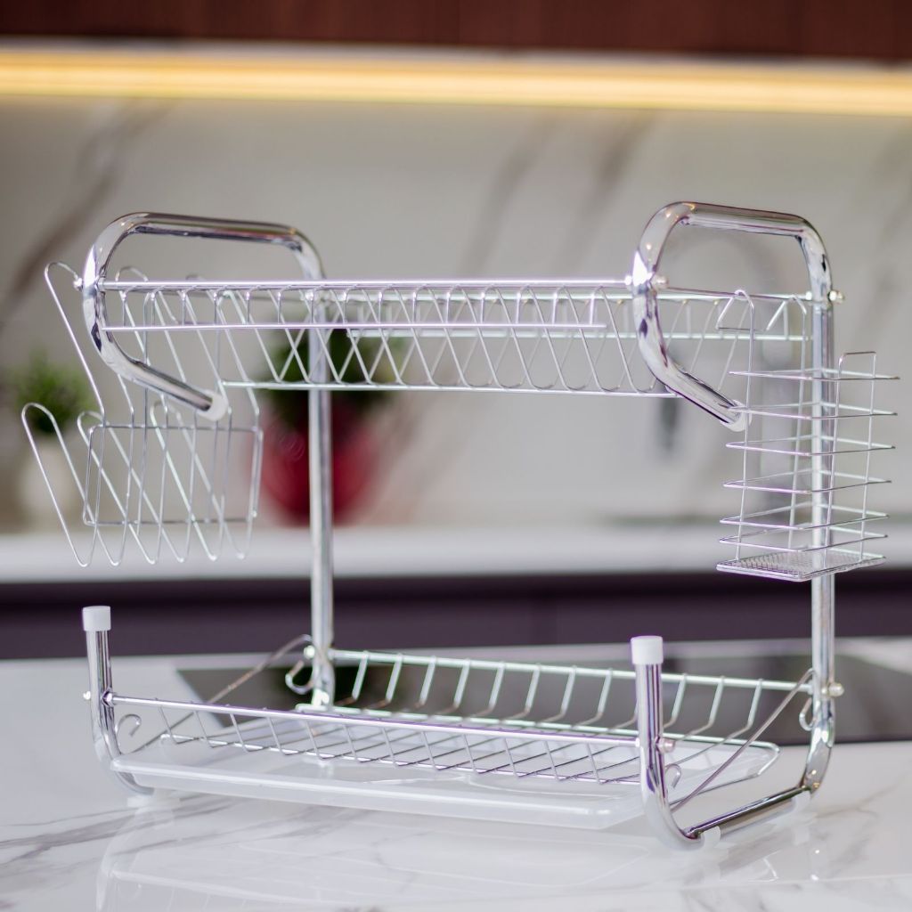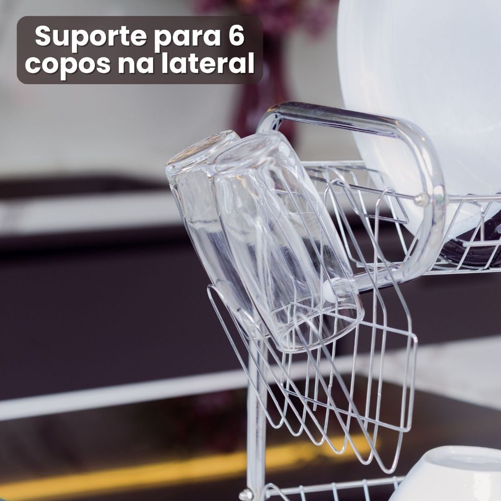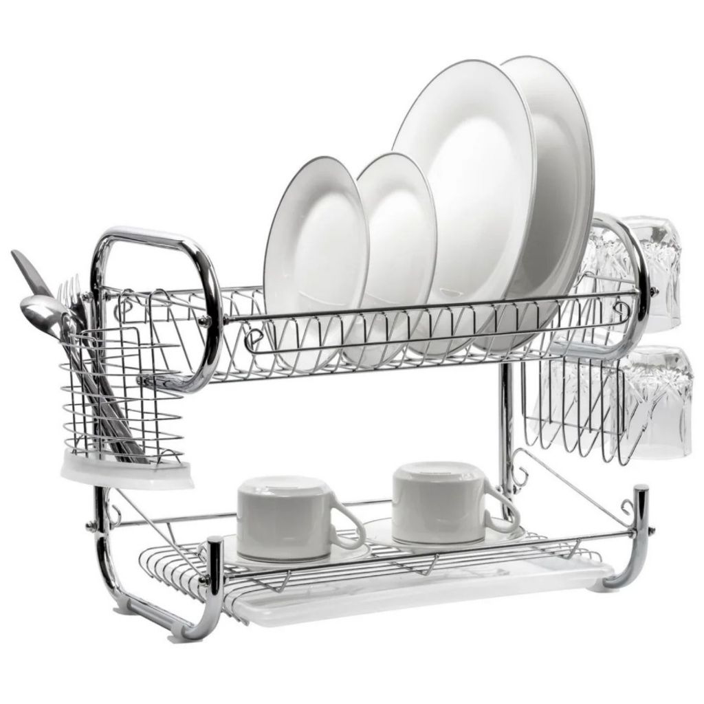 Escorredor De Louça Cromado 2 Andares 14 Pratos Porta Talheres