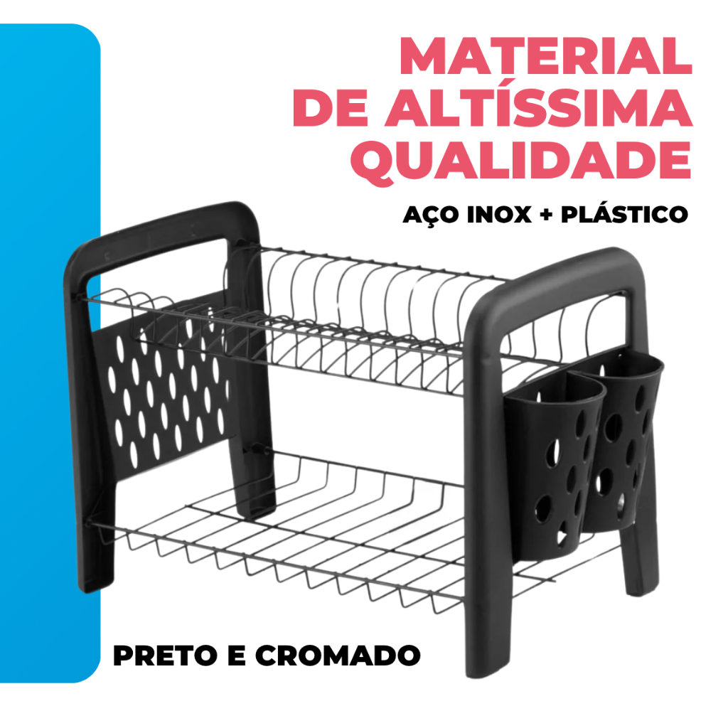 Escorredor De Louça Desmontável Slim Compacto Pia Cozinha Aço 16 Pratos Copos Talheres Preto Arthi