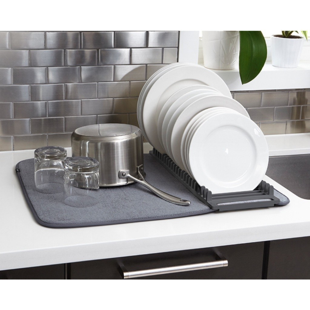 Escorredor De Louças 2 Em 1 Com Tapete Dobrável Absorvente Antiderrapante Microfibra Multifuncional