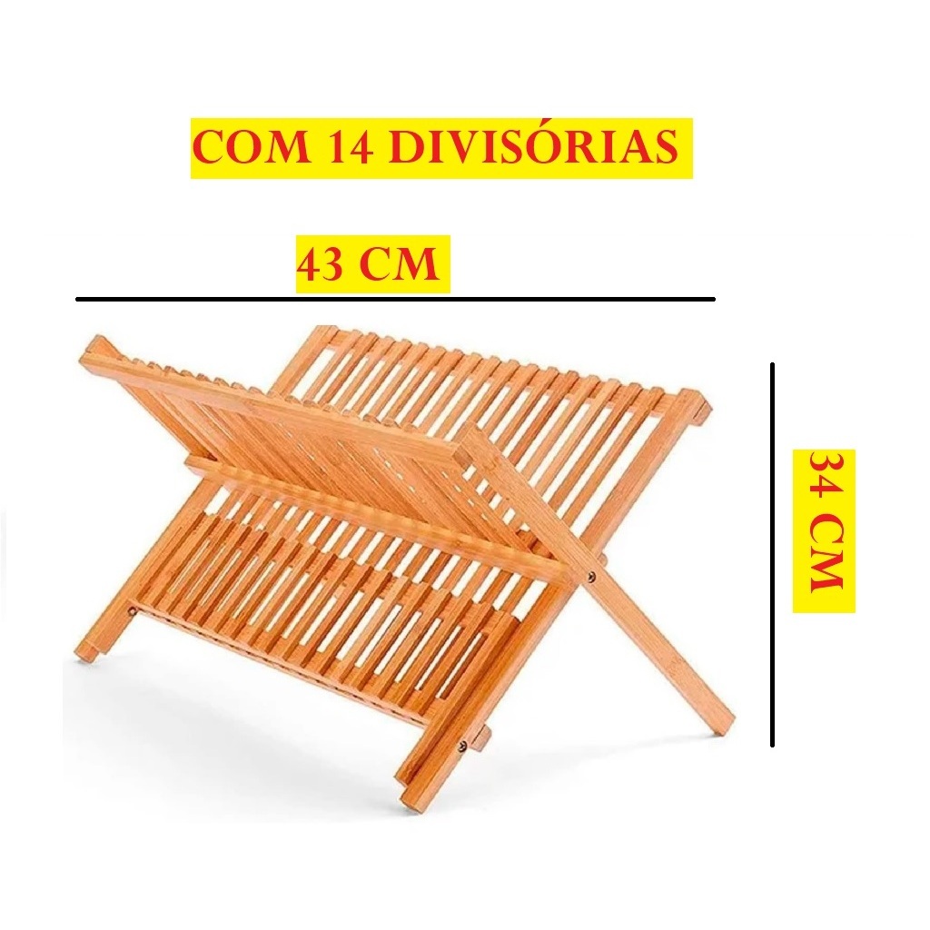 Escorredor De Pratos De Bambu 34x34CM 43x34CM Com 11e14 Divisórias Dobrável Prático E Fácil Para Pratos E Copos TopChef