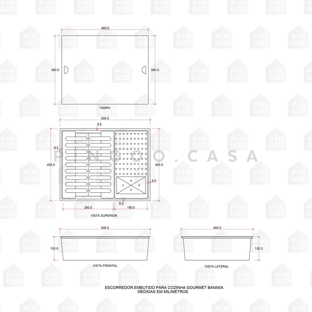 Escorredor Embutido Para Cozinha Gourmet Aço Inox 304 Baniwa 50x40 cm Pingoo - Preto