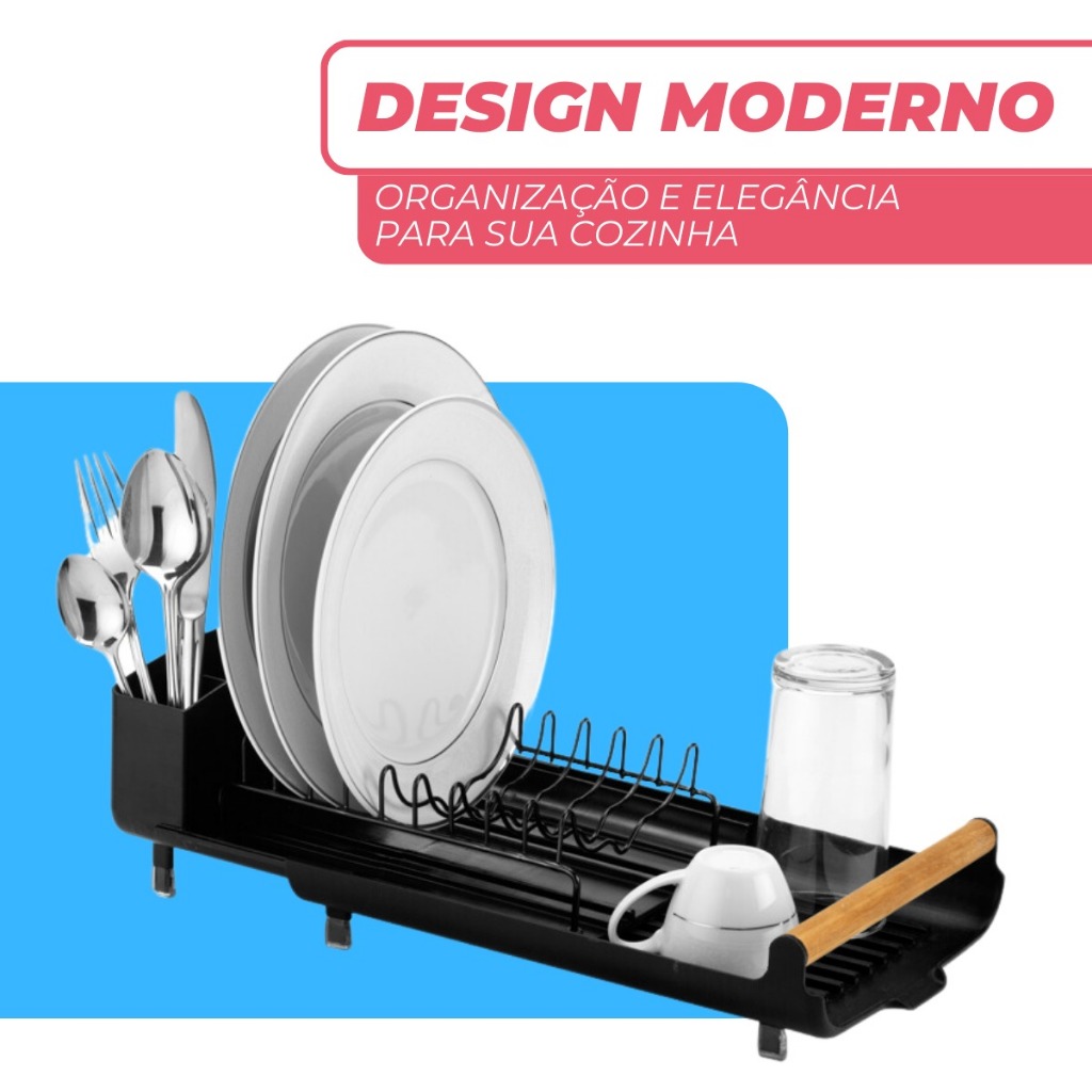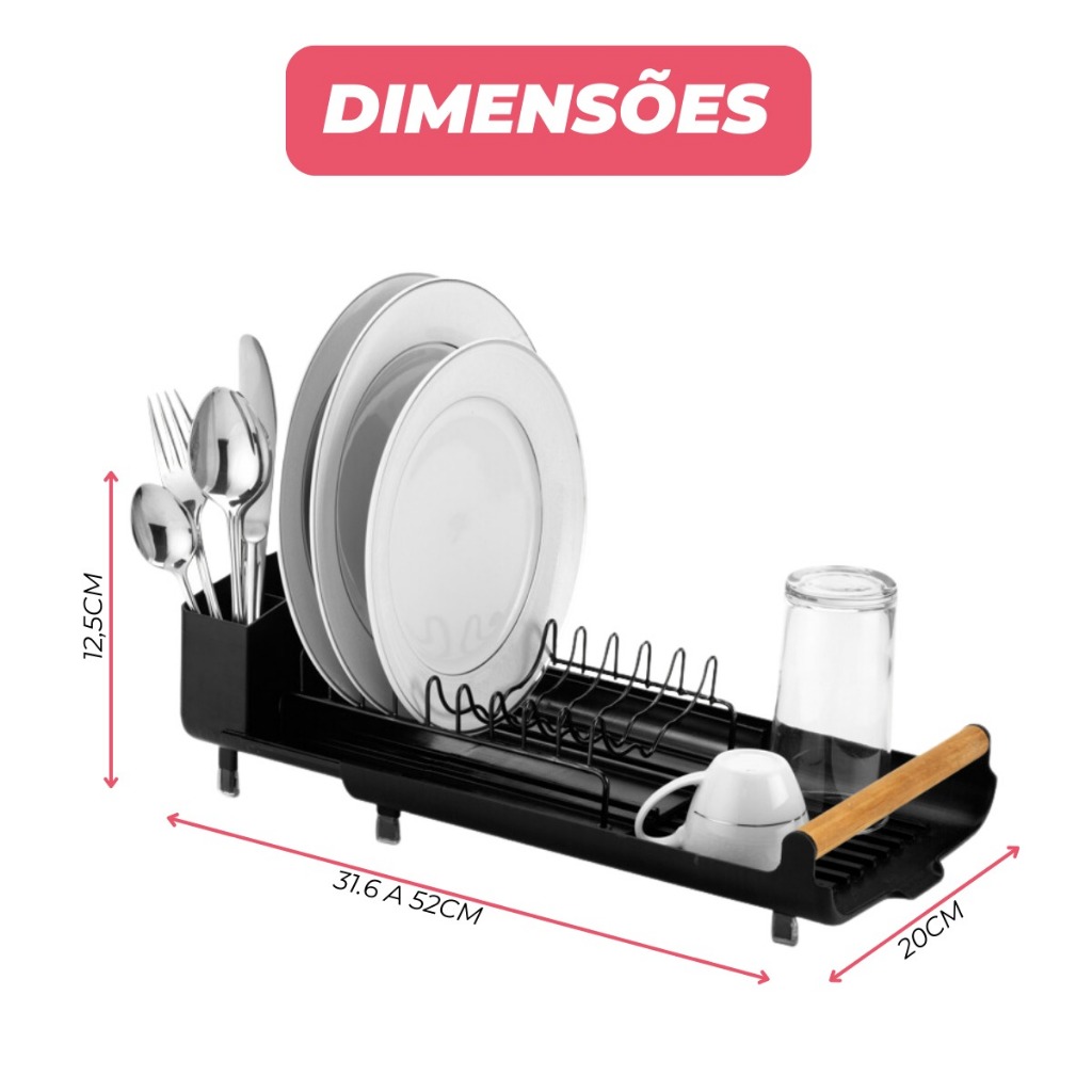 Escorredor de Louça Pratos Talheres Pia Cozinha Bandeja Retratil Compacto Eco Design Branco Arthi