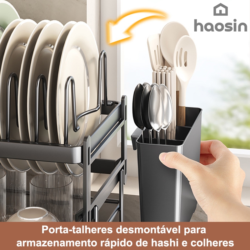 Escorredor de Louça Rack De Cozinha 2 Andares Preto haosin