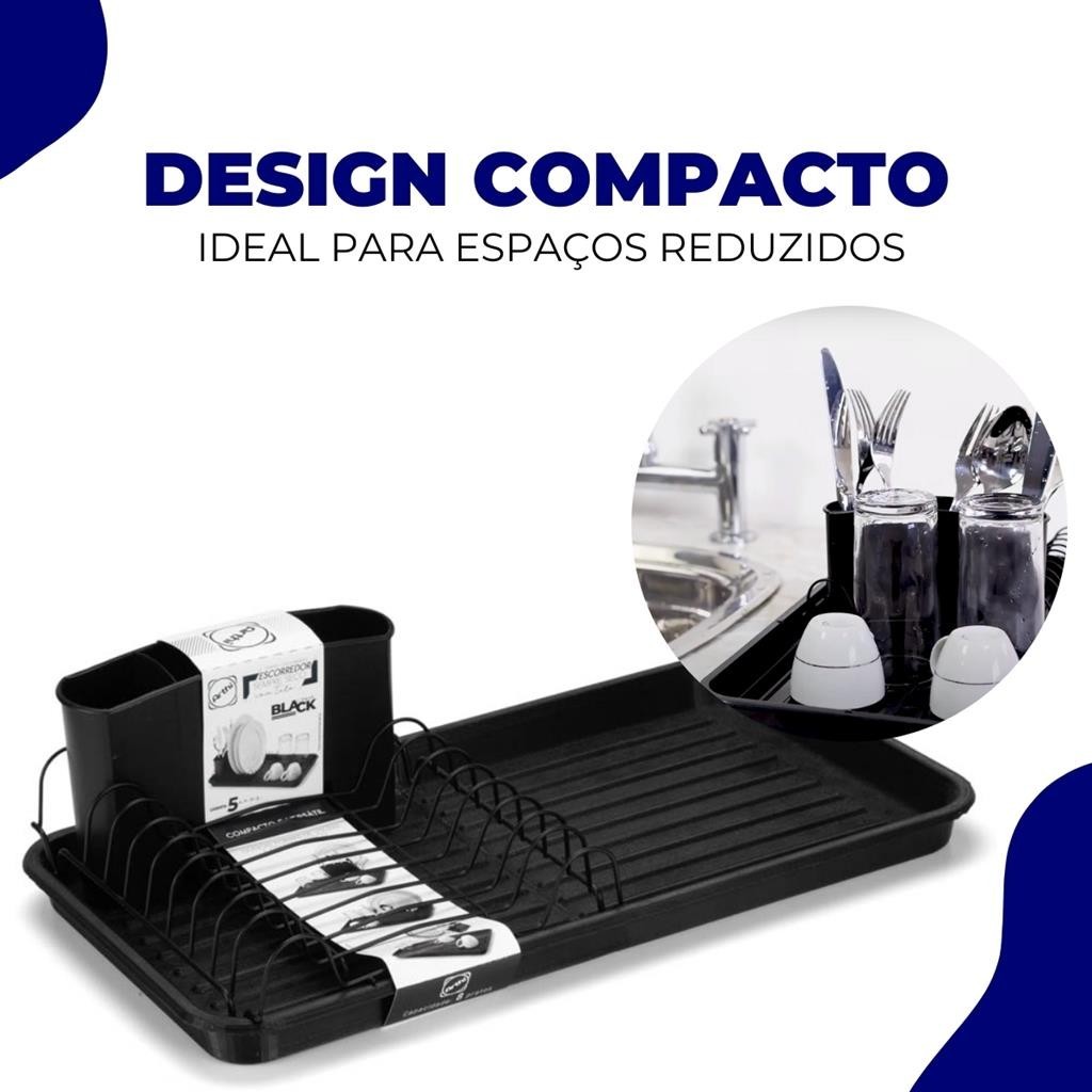 Escorredor de Loucas Organizador de Pratos Copos Talheres de Pia Cozinha Slim Preto Arthi