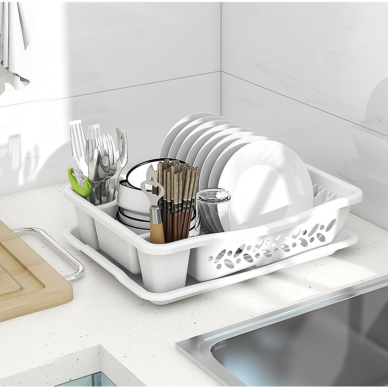 Escorredor de Pratos Multifuncional com Bandeja – Suporte para Talheres, Pratos e Copos
