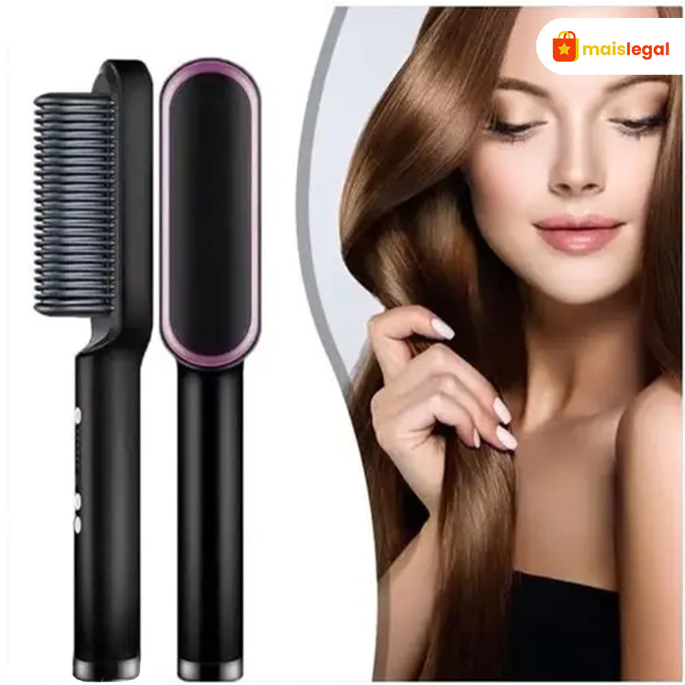 Escova Alisadora Bivolt 5 em 1 - Alisa, Hidrata, Modela, Alinha e Anti-Frizz