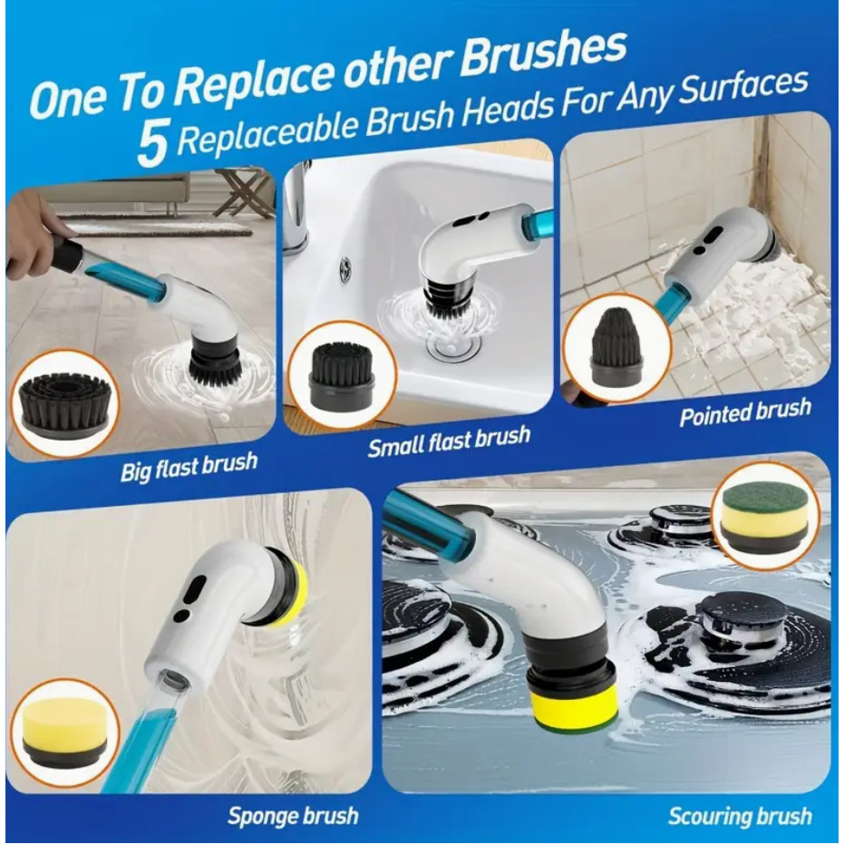 Escova De Limpeza Elétrica 9 em 1 Giratória Com Dispenser de Sabão Usb Multi Funções Acompanha Cabo Usb