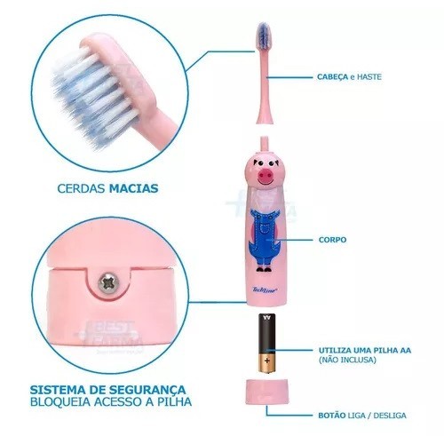 Escova Dental Elétrica Infantil Porquinho – Techline