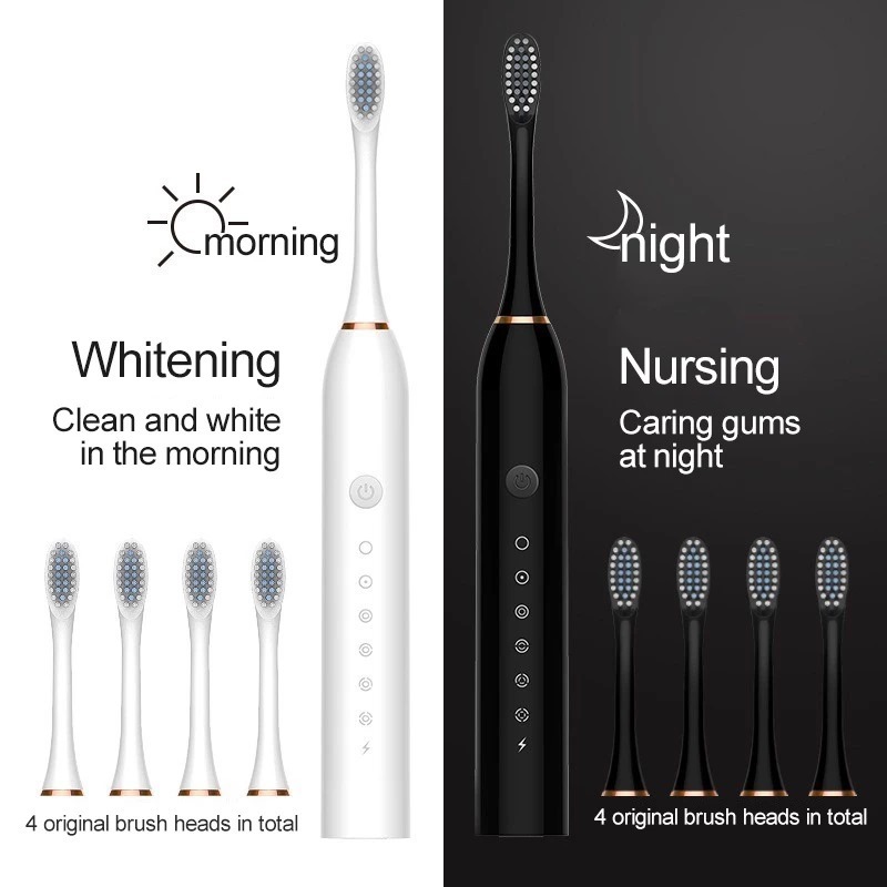 Escova Dental Elétrica USB Carga 6 Engrenagem À Prova D'água 4 Escovas Cabeças De Substituição