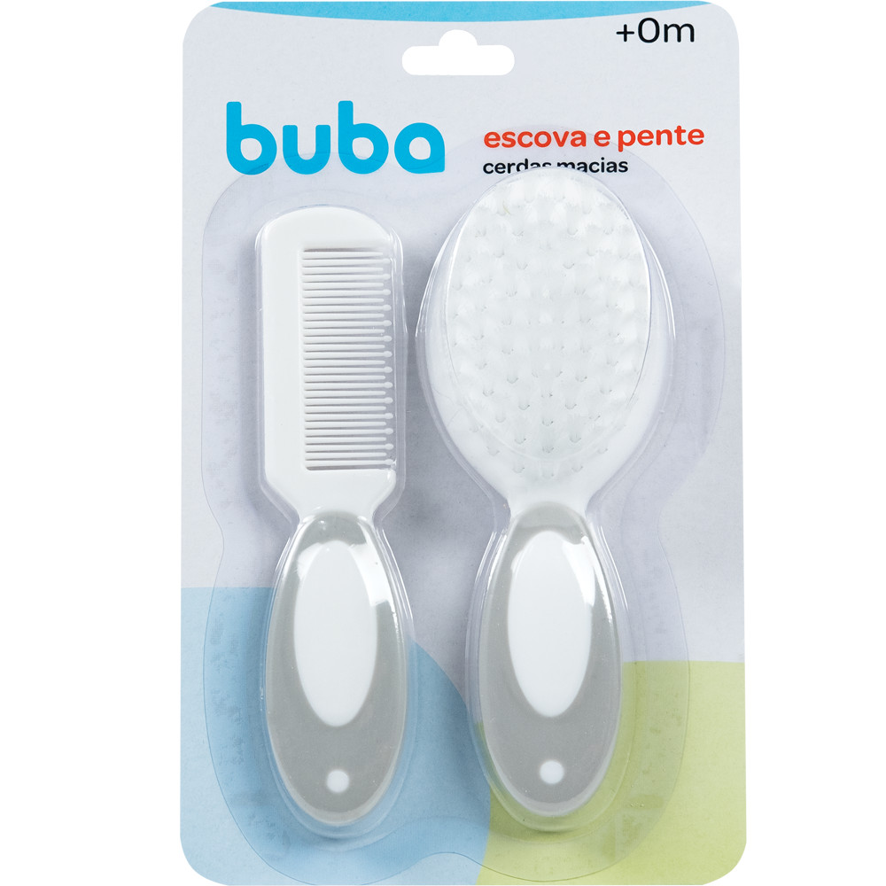 Escova E Pente Cerdas Macias Pontas Arredondadas Para Cabelo Bebe Infantil Azul Rosa Cinza Buba