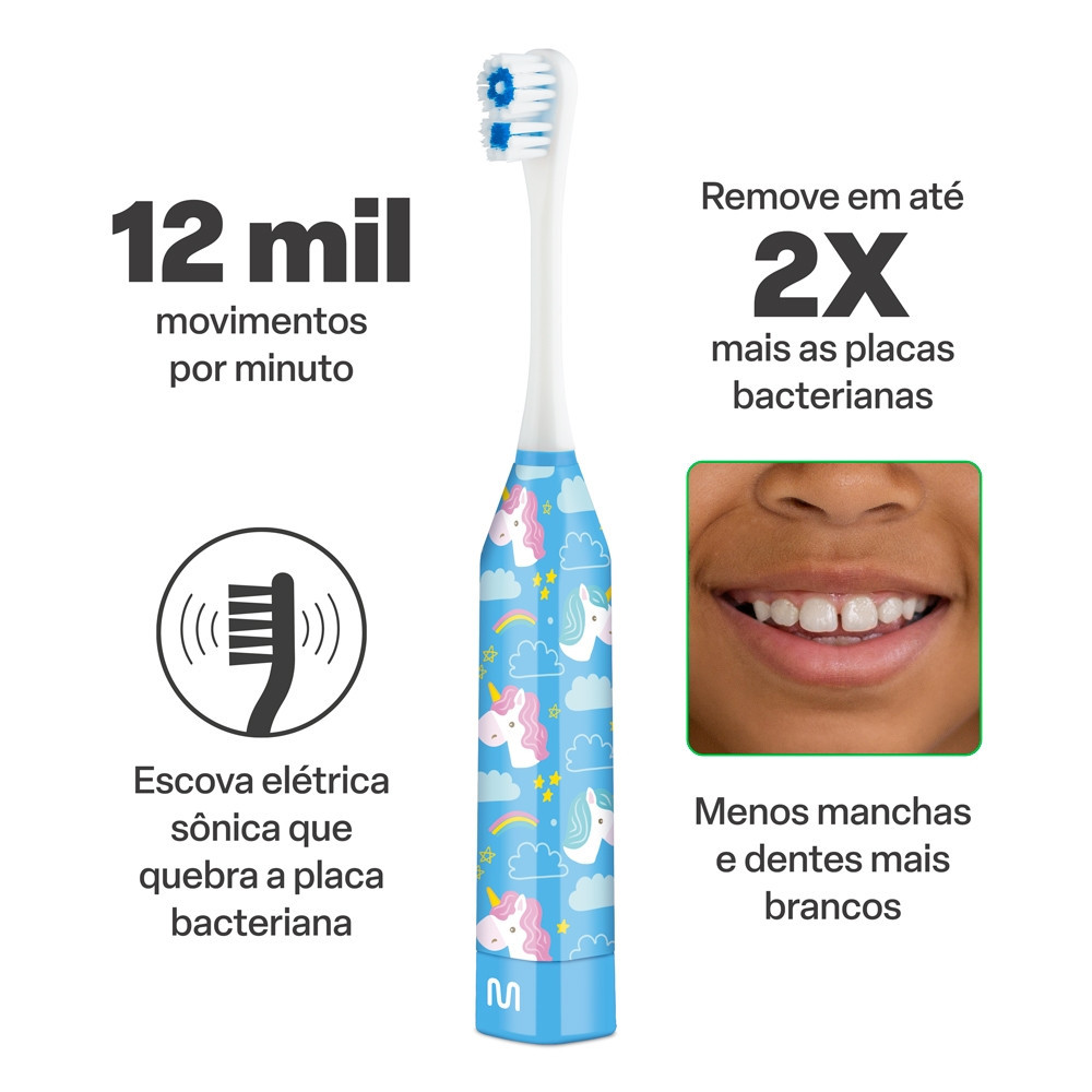Escova Elétrica Infantil Kids Health Pro Unicórnios Multi Saúde - HC081