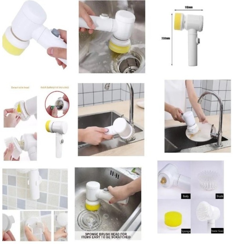 Escova Eletrica de Limpeza 5 em 1 Sem Fio Limpador Multiuso Pratico Para Cozinha , Banheiro