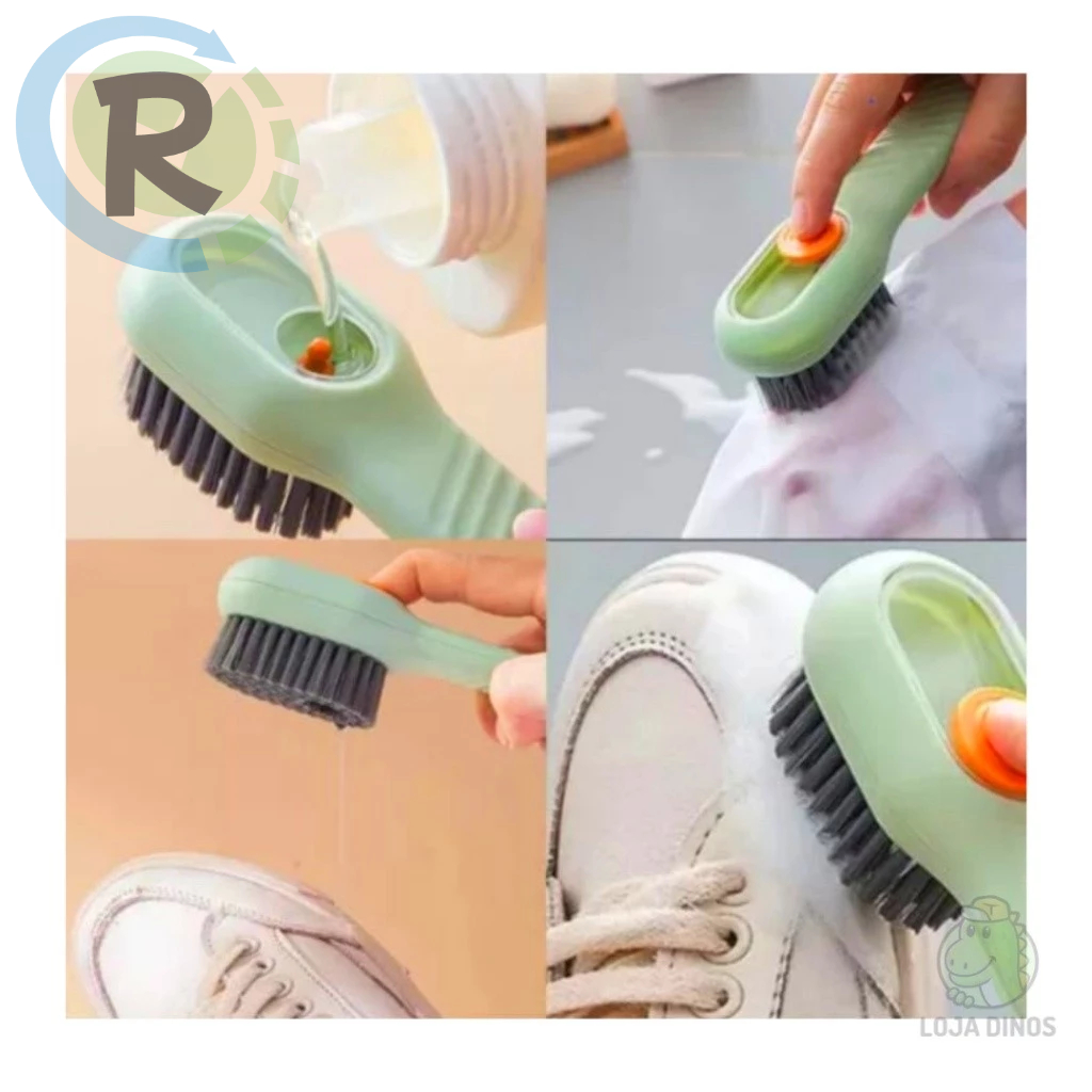 Escova Limpa Sapato Tenis Boné Roupa com Dispenser Reservatorio Sabão Liquido Sabonete