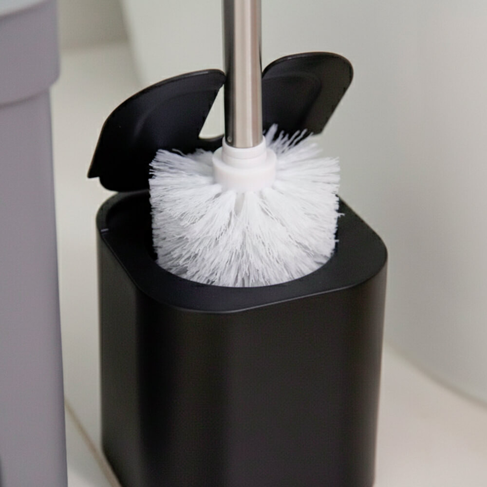 Escova Sanitária Com Suporte e Tampa Dual Preta - Ou