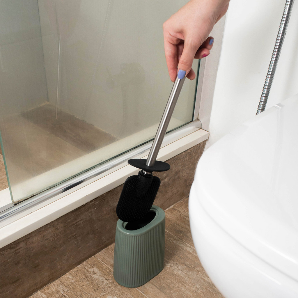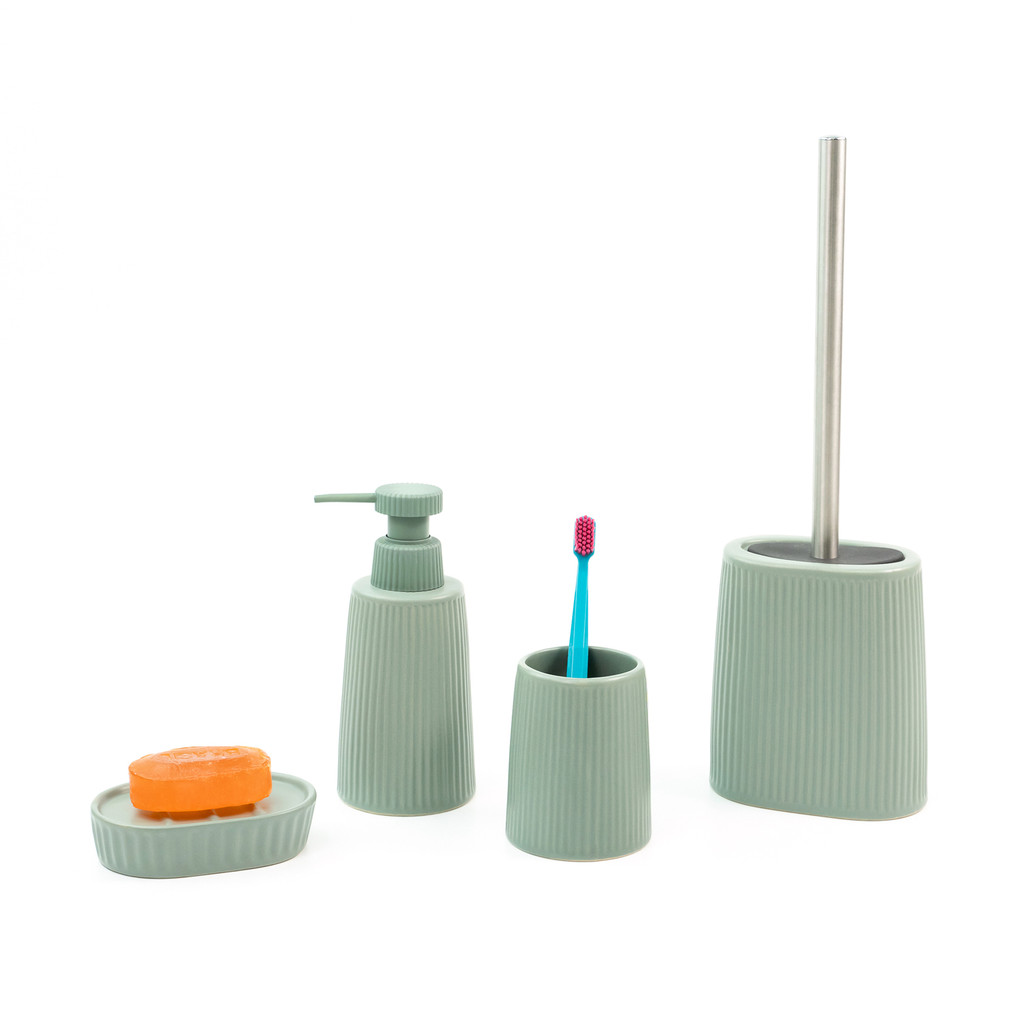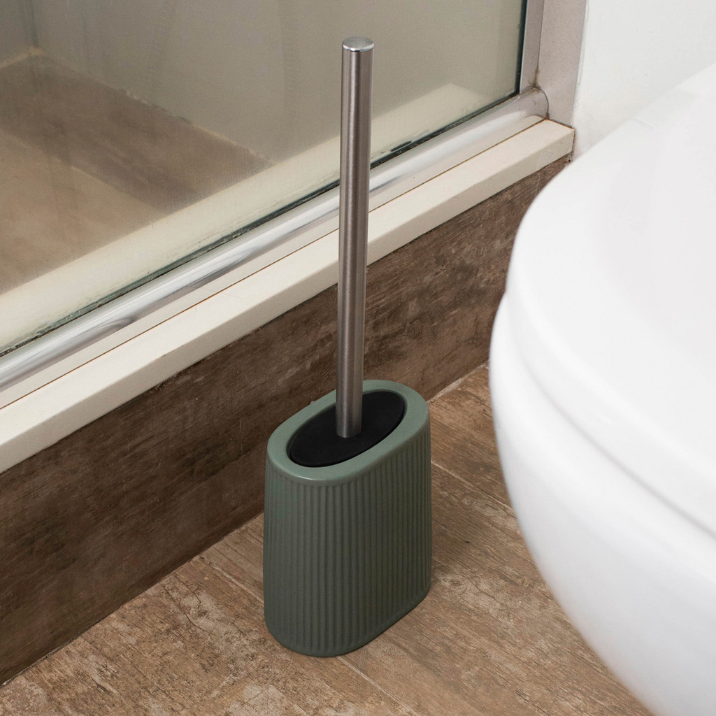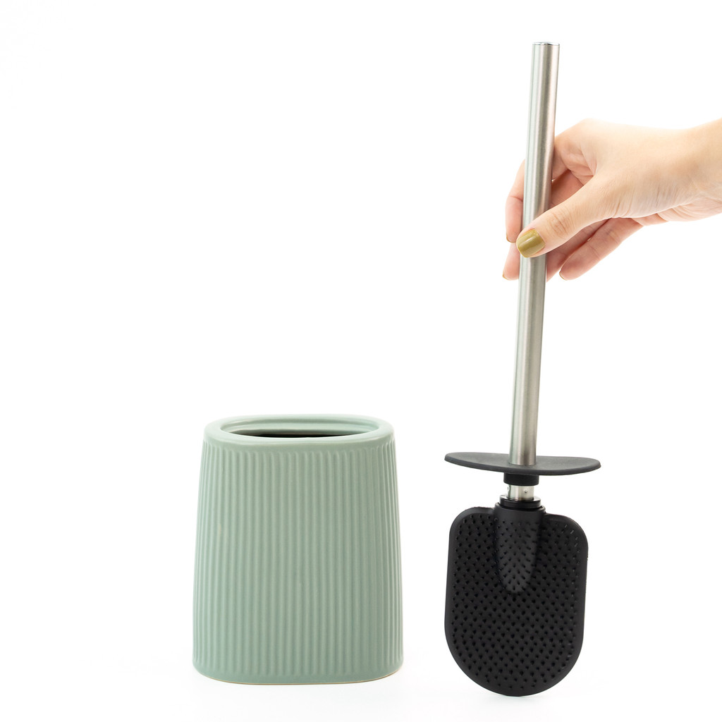 Escova Sanitária com Suporte Cerâmica Listras Verde Oikos