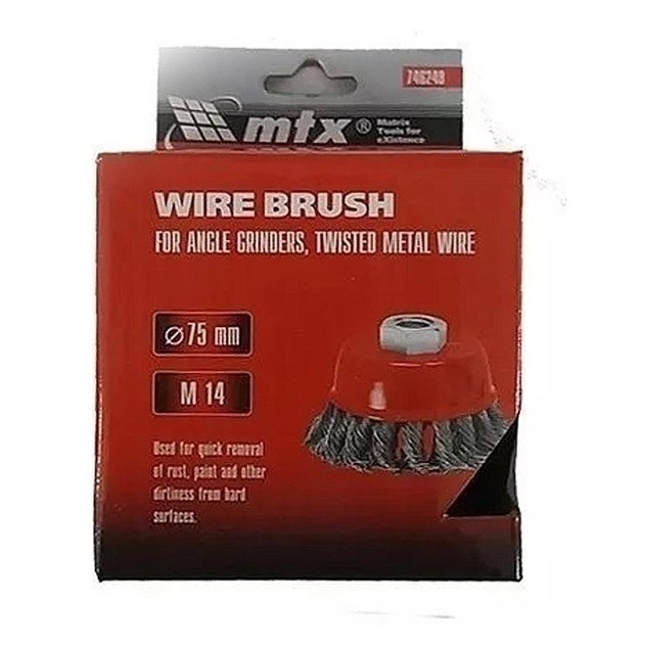 Escova de Aço Circular 75 MM Trançada Tipo Copo com Rosca M14 MTX