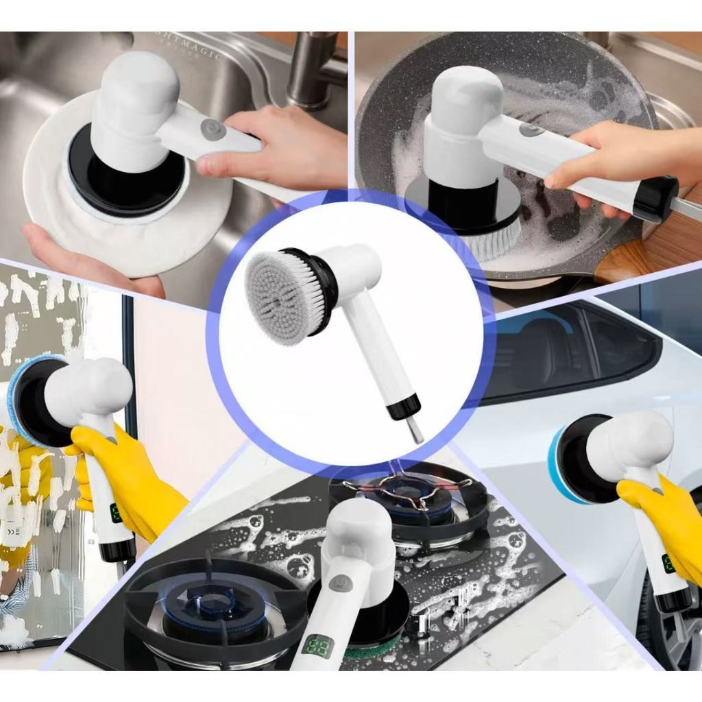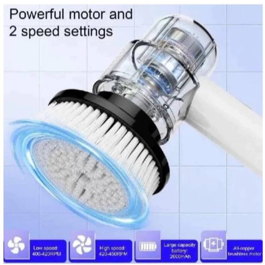 Escova de Limpeza Elétrica 6 em 1 Ajustável, Recarregável, Ideal para Janelas, Banheiro e Cozinha