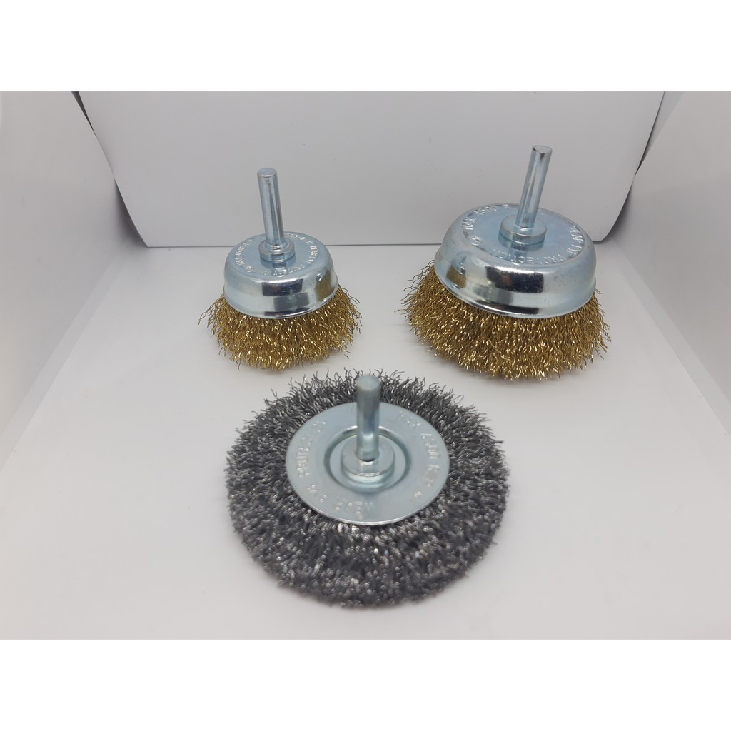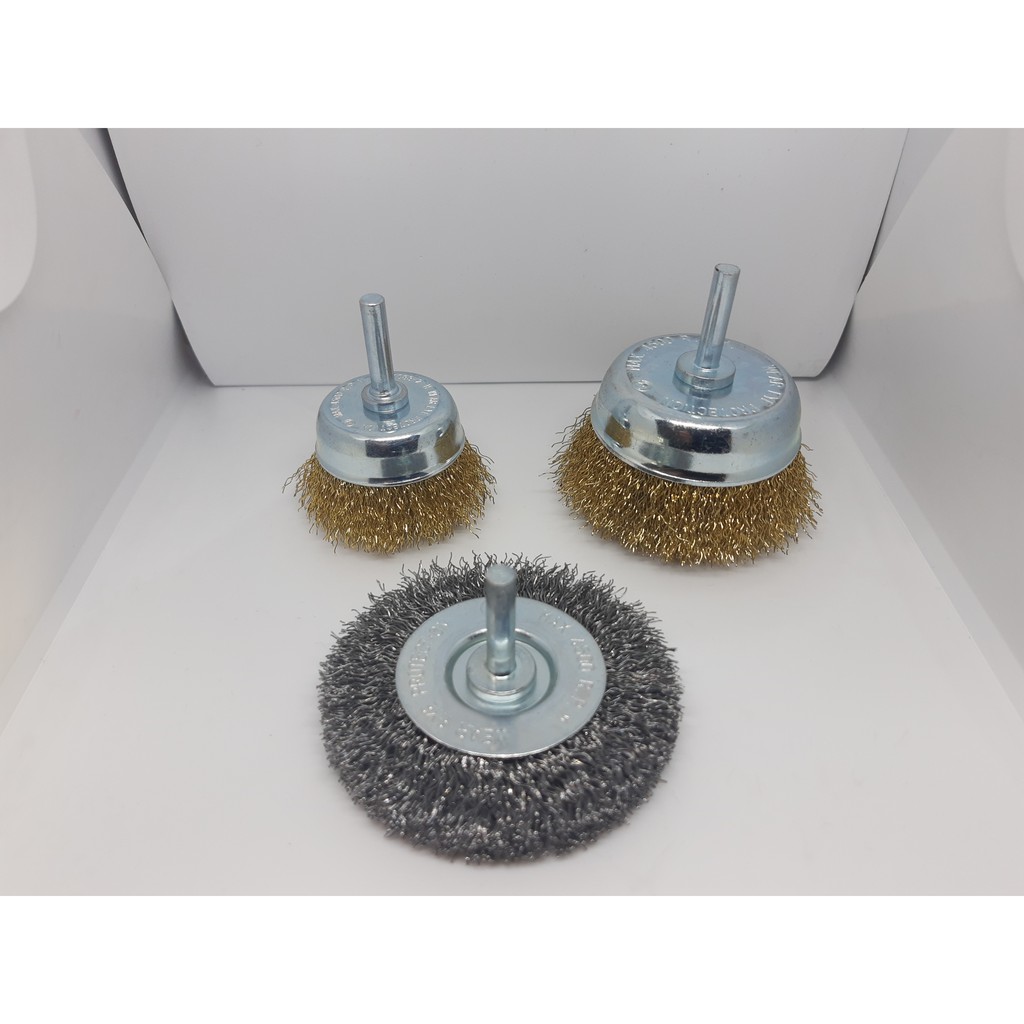 Escova de aço com haste para furadeira/parafusadeira lixar limpar.