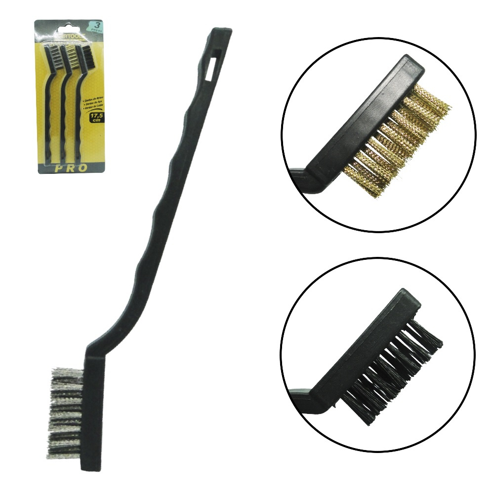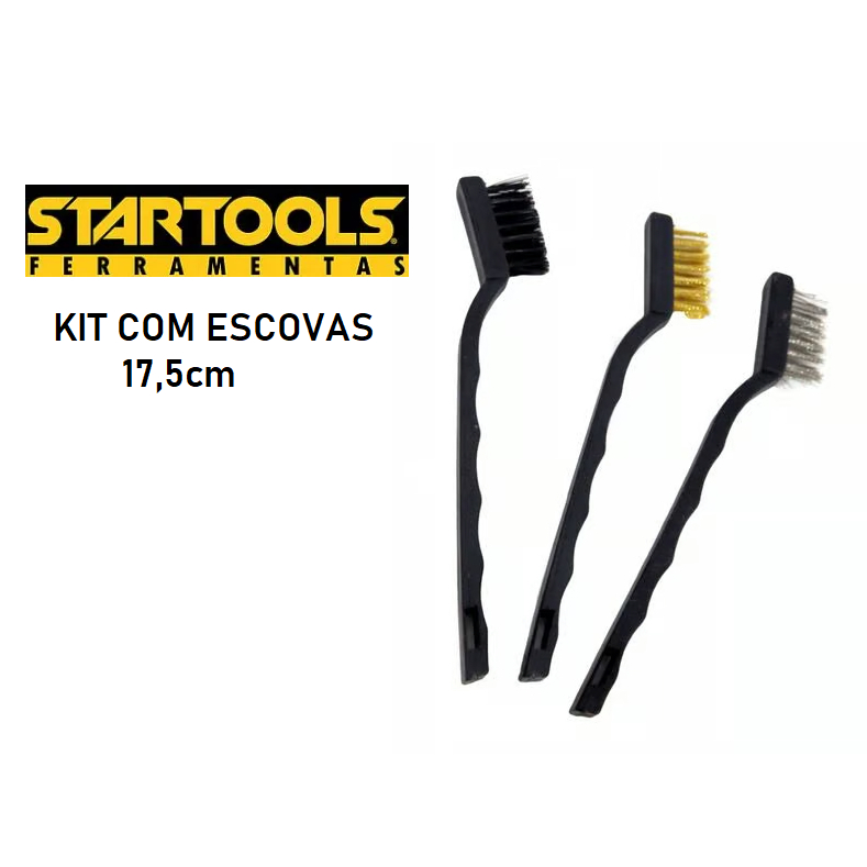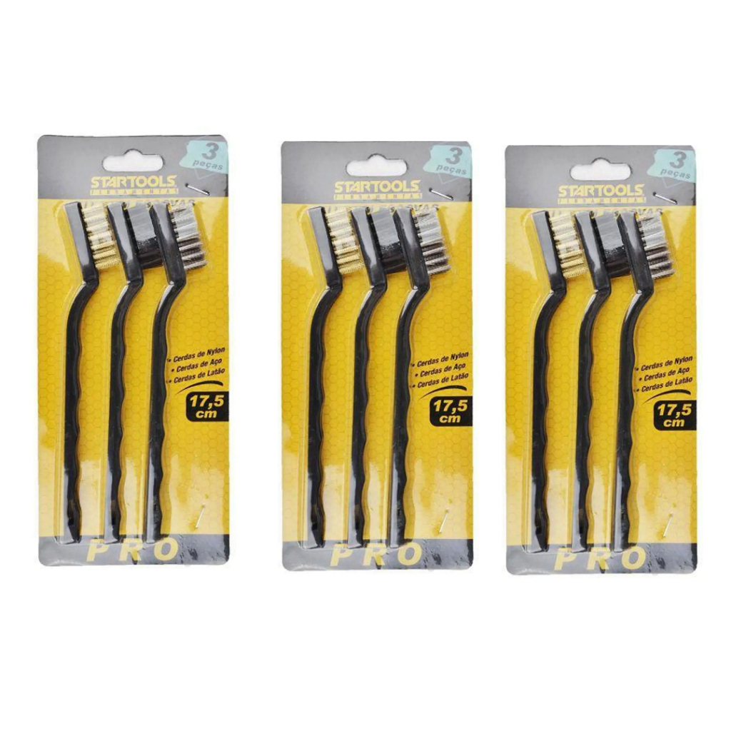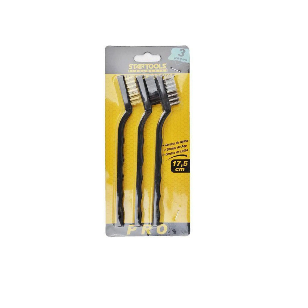 Escovas Escova de Aço 17,5cm Startools Multiuso Conjunto 3 Peças Aço Latão Nylon Cabo Plástico
