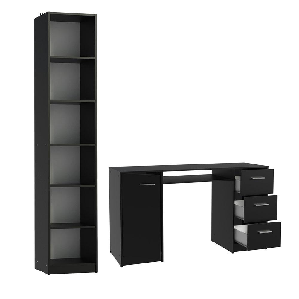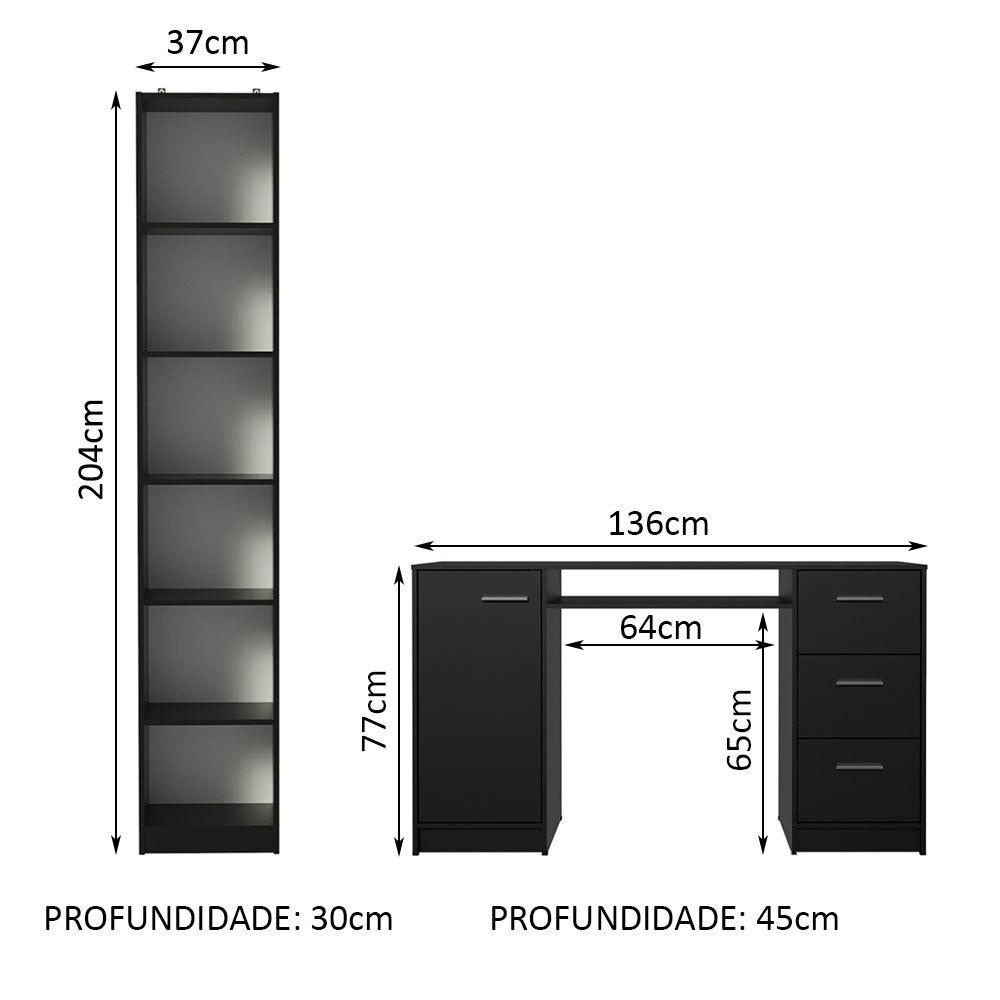 Escrivaninha Madesa Alaska + Estante Livreiro 6906 - Preto