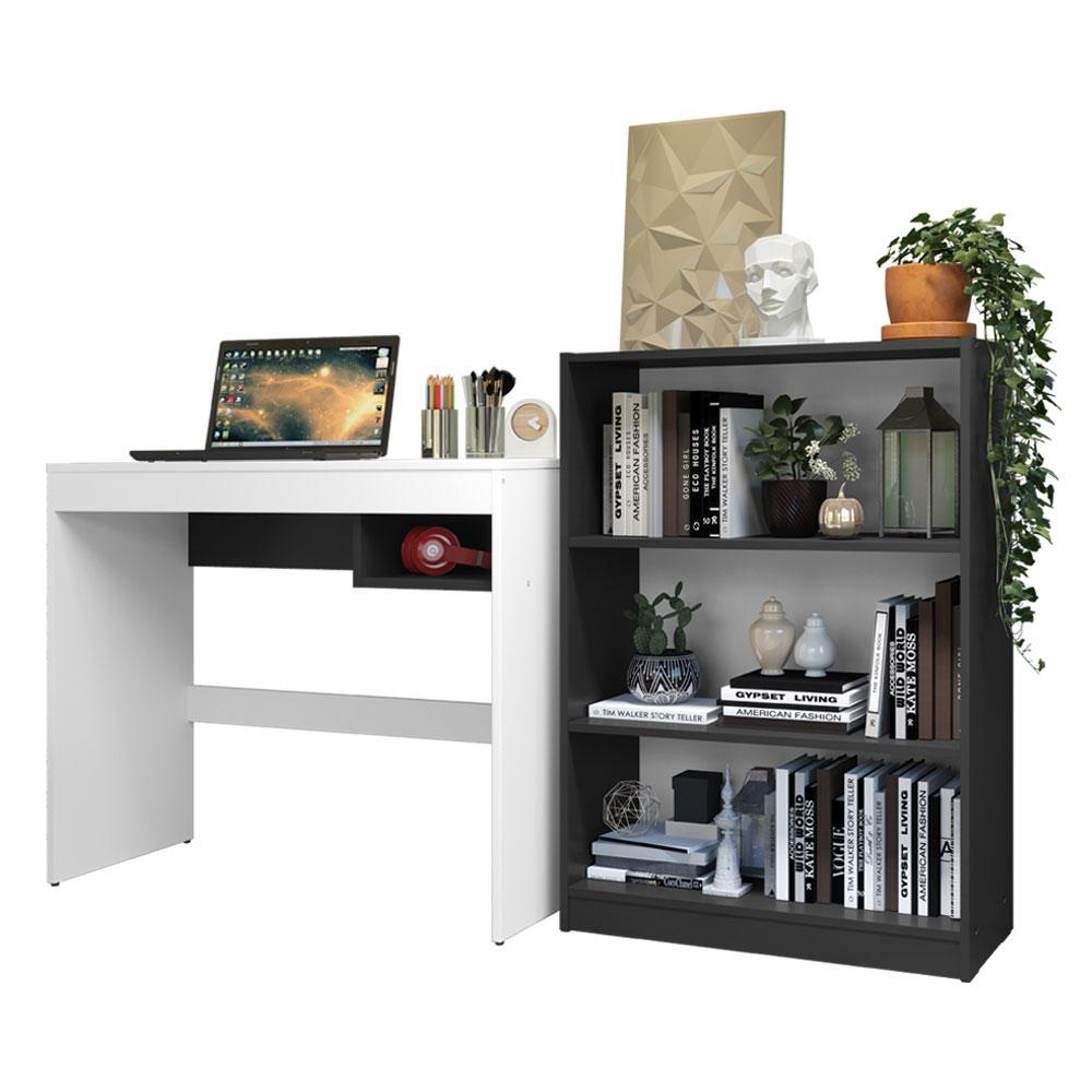 Escrivaninha Madesa Rubi + Estante Livreiro 6907 - Branco/Preto