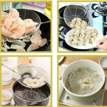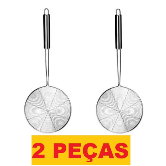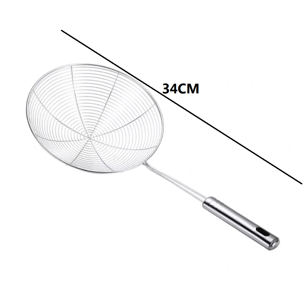 Escumadeira Aramada Resistente Fritura Inox 34,5CM De Comprimento Batata Pastel Resistente Multiuso Universal