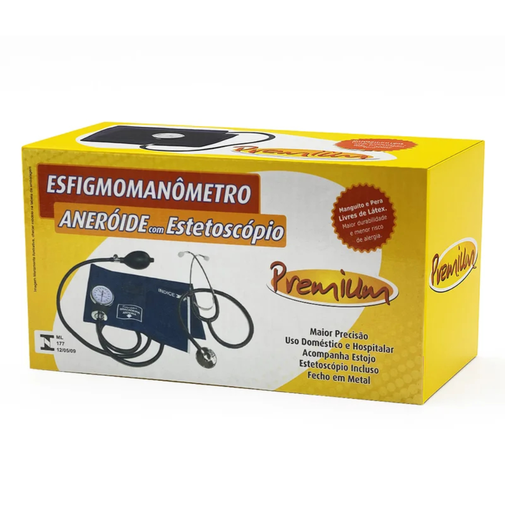 Esfigmomanômetro Aneróide Com Estetoscópio Premium Adulto