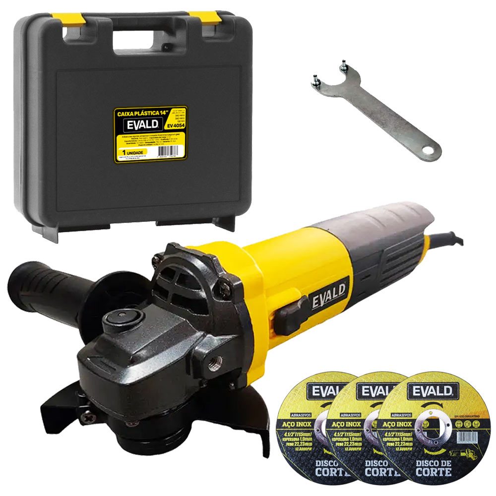 Esmerilhadeira Angular 4.1/2 POL 850W 115MM EV850 EVALD + Kit 3 Discos e Maleta